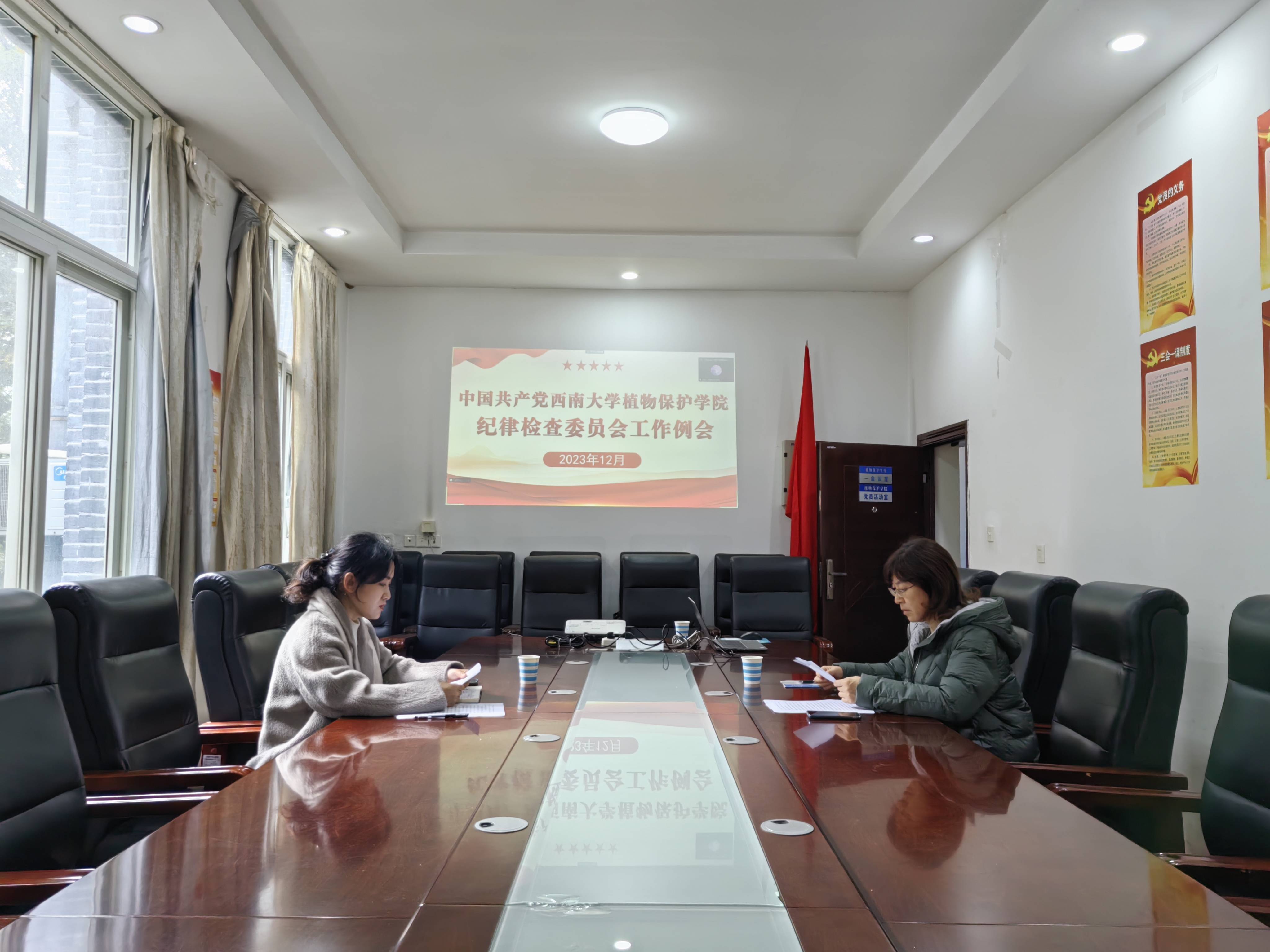 陈园园同志首先带领全体委员集中学习了习近平总书记在12月8日召开的中共中央政治局会议上的重要讲话精神,以此作为本次工作例会的“第一议题”。本次中央政治局会议听取了中央纪委国家监委工作汇报,研究部署2024年党风廉政建设和反腐败工作,审议了《中国共产党纪律处分条例》。全体委员从宏观上明确了要进一步严明政治纪律和政治规矩,以严明政治纪律带动各项纪律全面从严。要坚持党性党风党纪一起抓,推进纪律教育常态化,加大《中国共产党纪律处分条例》宣传教育力度,引导广大师生党员学纪、知纪、明纪、守纪。要坚持把纪律挺在前面,抓好《中国共产党纪律处分条例》的贯彻执行,促进执纪执法贯通,切实维护纪律的刚性、严肃性。要准确运用“四种形态”,落实“三个区分开来”,把从严管理监督和鼓励担当作为统一起来,不断提升全党的创造力凝聚力战斗力。