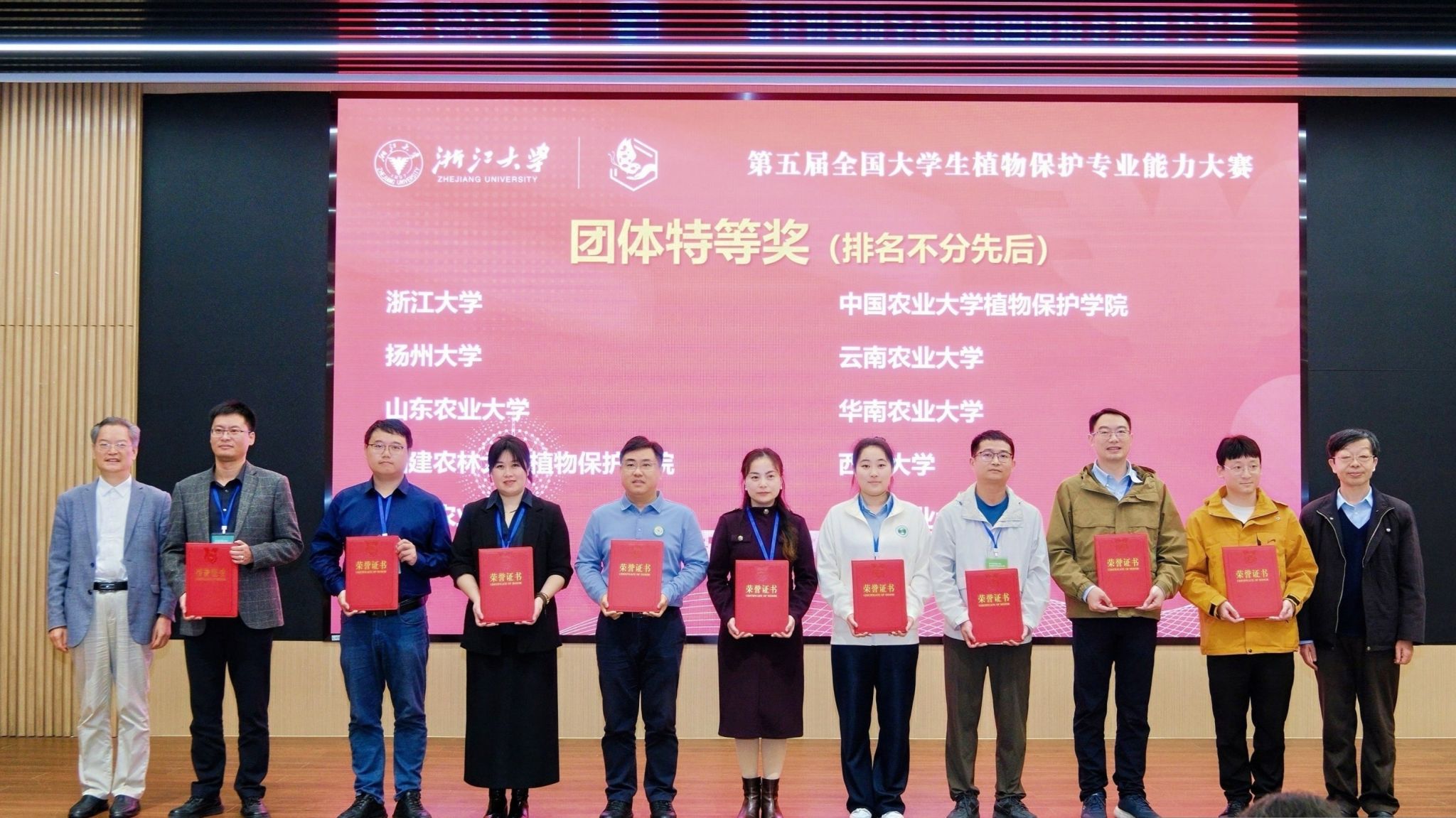 2025年11月7-8日,第五届全国大学生植物保护专业能力大赛在浙江大学紫金港校区举办,学院参赛团队沉着应战、稳定发挥,在9个学生单项赛及青年教师学术论坛的激烈比拼中,共获特等奖3项,一等奖3项,二等奖1项,三等奖3项,并再度荣获团体特等奖。