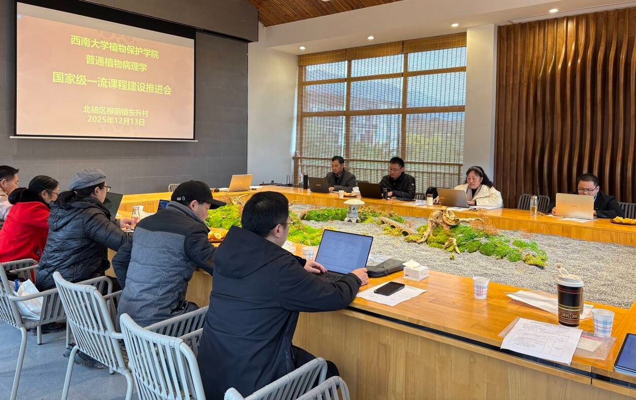 为深化《普通植物病理学》国家级一流课程建设,助力乡村全面振兴,学院植物病理学系于2025年12月13日在北碚区柳荫镇东升村举办课程建设推进会。学院副院长杨宇衡、东升村党总支书记王琼玲、课程负责人青玲及植物病理学系10余名教师参会,通过实地考察、座谈交流与教学研讨,搭建“课堂-田野-乡村”育人桥梁,夯实课程立德树人根基。