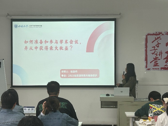 最后,赵晨冉同学以“如何准备和参与学术会议,并从中获得最大收益?”为主题,向同学们讲述注意事项、收获最大化的几个目标函数、学术会议形式以及参加学术会议的好处这四个方面,帮助同学们可以更加有准备地参与学术会议,并从中学到更多有用的知识。