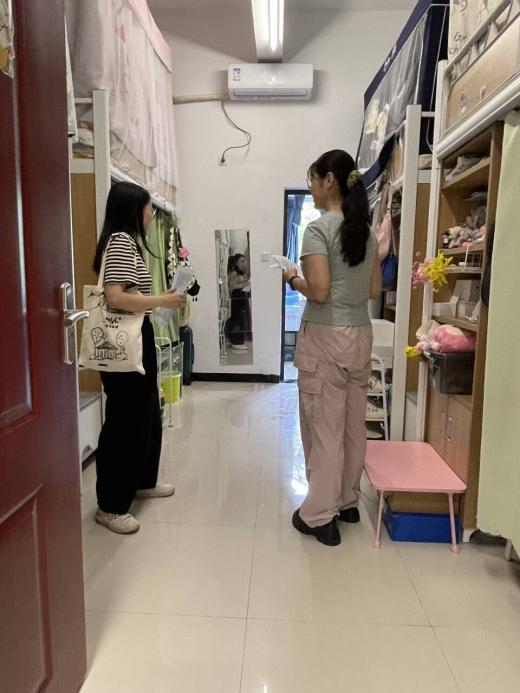 6月7日,在辅导员严潇漪的带领下,由学生代表组成评审团,对学院研究生宿舍进行了全面细致的检查。从床铺整理到物品摆放,从地面清洁到通风情况,每一项细节都被严格评估。评比不仅检验了宿舍的整洁度,更提高了同学们对安全卫生重要性的认识。