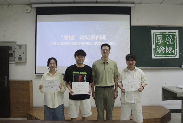 为深入推动研究生学术科研氛围建设,有效促进研究生学术水平全面提升,由学院主办的2023-2024学年“厚植”论坛第四期学术交流活动于5月16日下午在34教322室举办。本次活动邀请了学院教师李竹、尚峰和李亚迎担任评委,学院党委副书记陈园园和辅导员严潇漪作为嘉宾出席。活动由2023级研究生范文启主持。