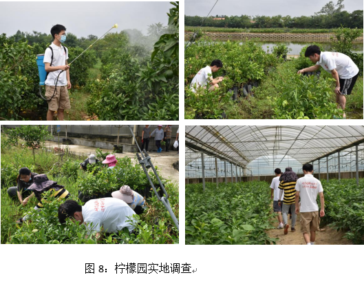 8月2日,实践团队来到重庆市潼南区柠檬科技小院。在此之前,学院部分研究生先后入驻潼南柠檬科技小院,持续攻坚突破柠檬螨害防控技术,积极服务当地柠檬产业发展。在驻地同学的带领下,实践队员走进柠檬种苗培育室、病虫害防治实验室、加工车间等场所,了解了柠檬科技小院的发展历程、科研成果和产品创新;走进柠檬园,观察柠檬树生长情况、记录柠檬园病虫害发生情况、为柠檬树除草施肥等。