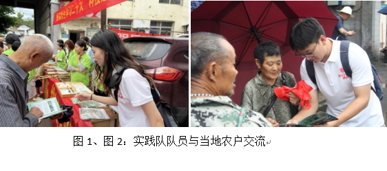 7月2日,实践团队前往重庆市合川区铜溪镇进行科技赶场。队员们把常见的植物病虫害标本、当地常见病虫害防治知识展架及宣传手册等放置在场镇中心,接受当地农户的咨询。同时,实践队员对农户随机进行了问卷调查,并进行耐心细致的宣传和讲解相关知识。