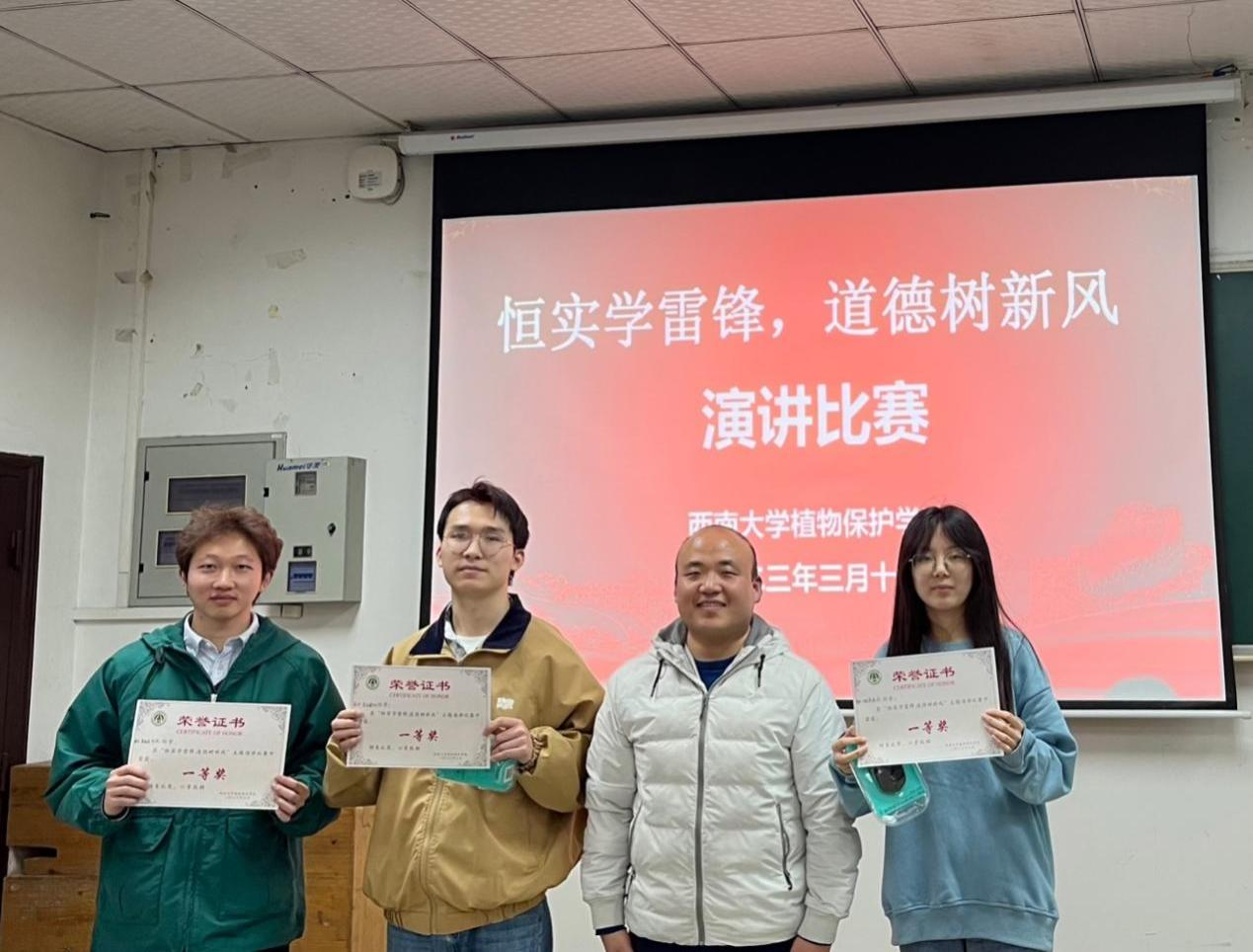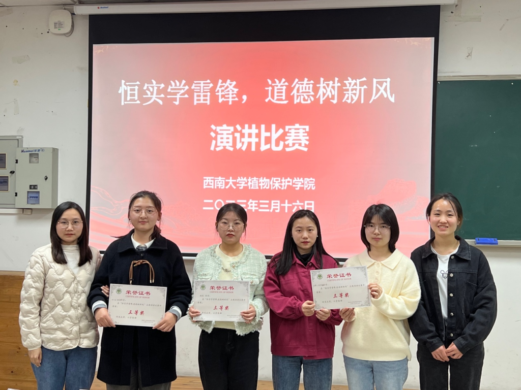 为切实感悟雷锋精神,学习中华传统美德,植物保护学院于3月16日下午在书楠楼322室组织开展了以“恒实学雷锋,道德树新风”为主题的演讲比赛。学院团委书记、学工办主任张周飞,组织员李园媛以及辅导员严潇漪作为评委出席。学院部分研究生参加了此次活动。