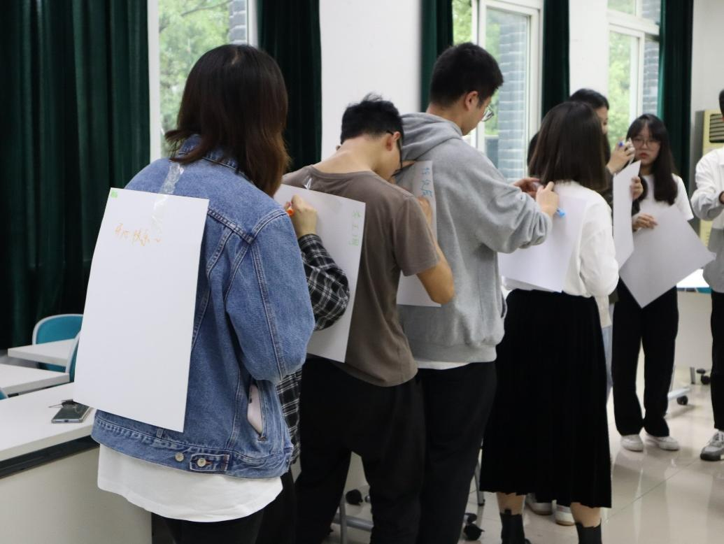 在游戏中大家互相认识和了解,随着游戏的进行大家的热情也持续高涨。最后,大家相互为自己的伙伴留下匿名祝福。每个人将一张A3纸写上自己的名字后贴在后背上,小组成员之间相互写下给对方的祝福。20分钟后,每个人的纸上都是满满的祝福!希望大家都能够带着伙伴们最诚挚的祝福继续前行!