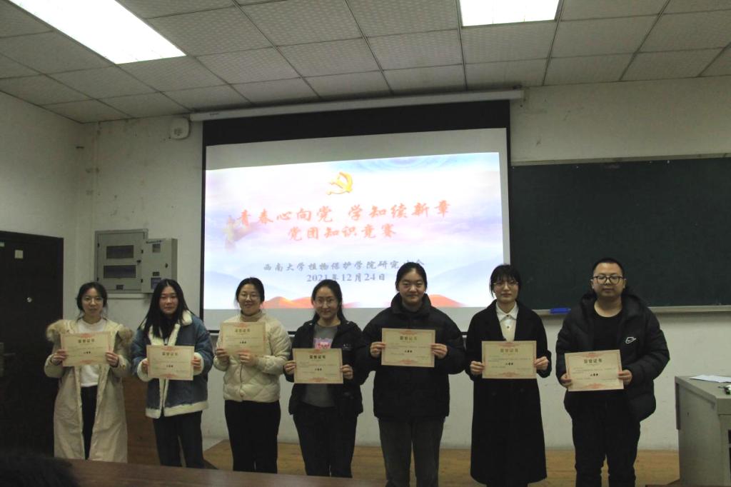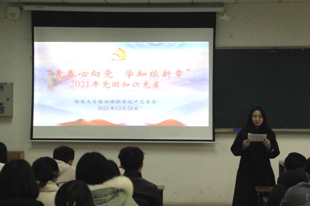 百年正风华,青春心向党。为进一步加强学院学生党史学习教育,深入学习贯彻党的十九届六中全会精神。学院研究生会于12月举行了“青春心向党 学知续新章”党团知识竞赛。竞赛对象面向学院全体研究生和本科生。继12月9日初赛以后,共有6个小组(含23名同学)来到了决赛的舞台。本次决赛于12月24日下午在学院322室顺利举办。活动由2021级研究生何颖主持。