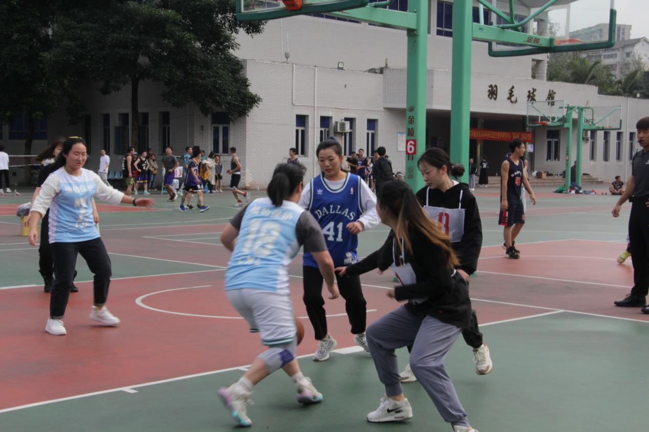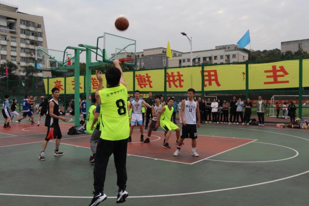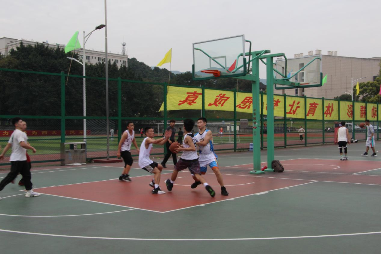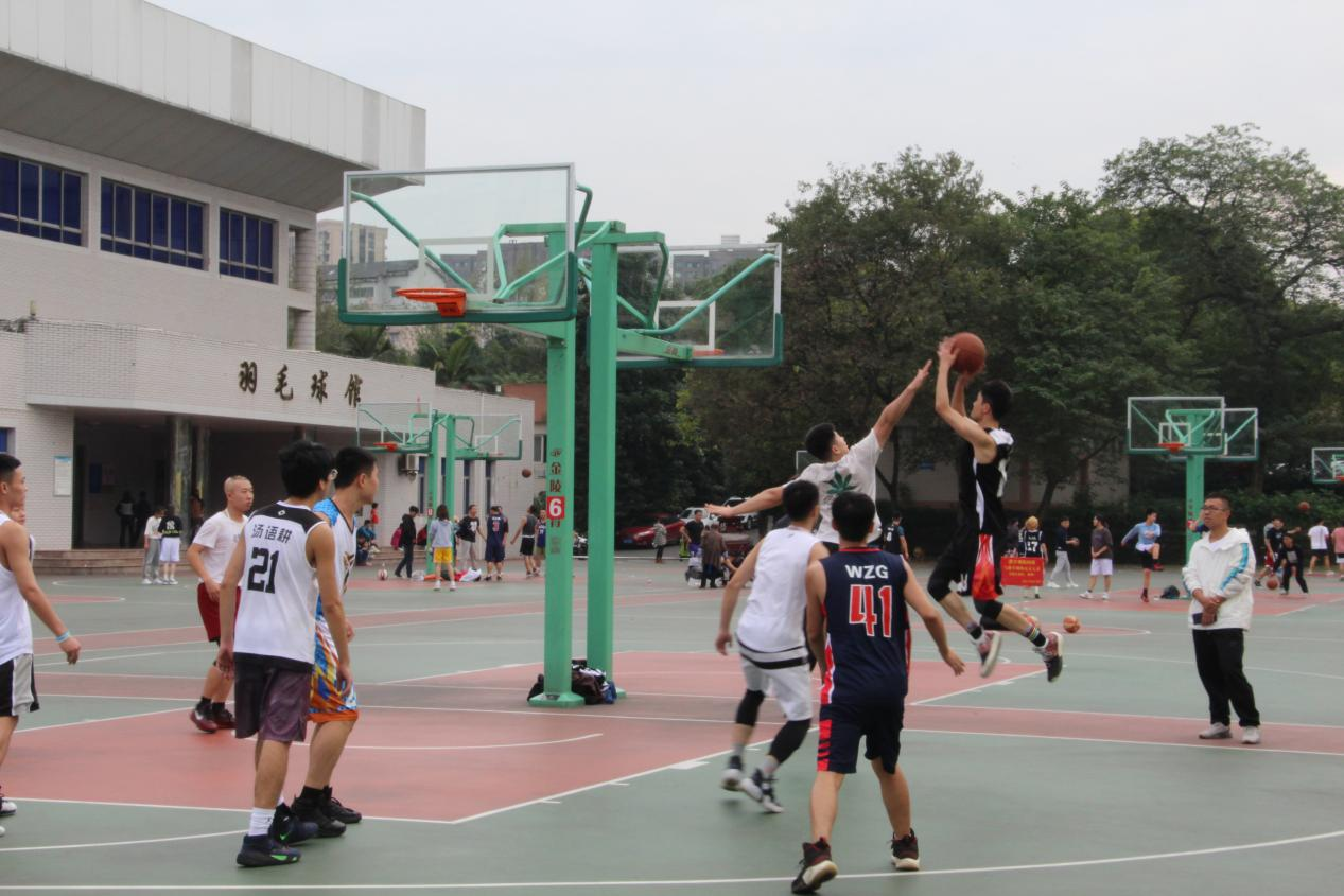 随后,学院教师队对阵研究生男篮队。比赛中,双方分数你追我赶。最终,教师队一鼓作气,连得数分,以45:37的比分战胜研究生队。