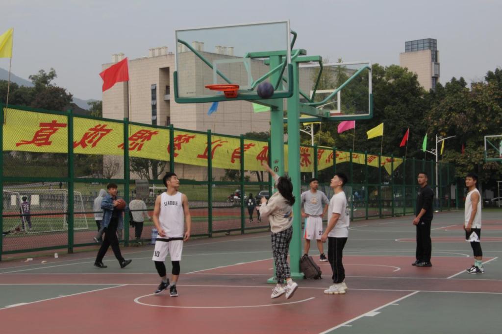 首先是新老生交流赛。老生们以女篮10:3和男篮44:35的比分取得了胜利。