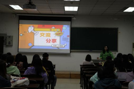 然后,2019级硕士研究生涂艳清从升学、考公、企业就职三个大方向介绍了研究生未来发展的方向,并且分享了自己的求职心得。她鼓励同学们要提前规划好发展路线并为之努力。