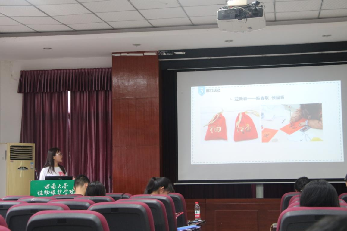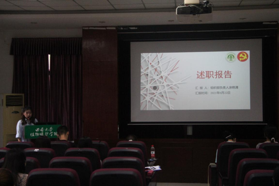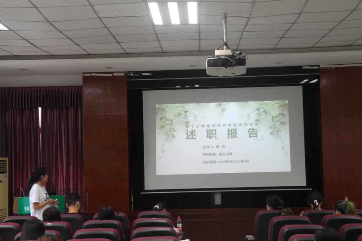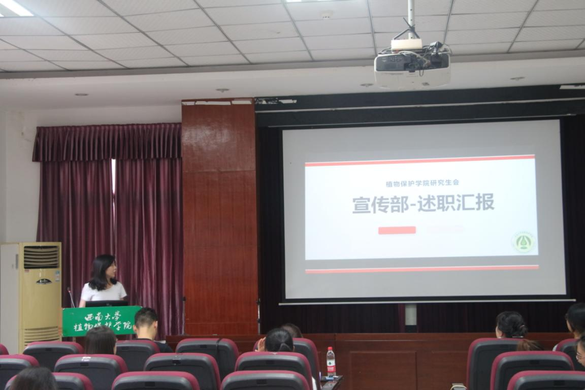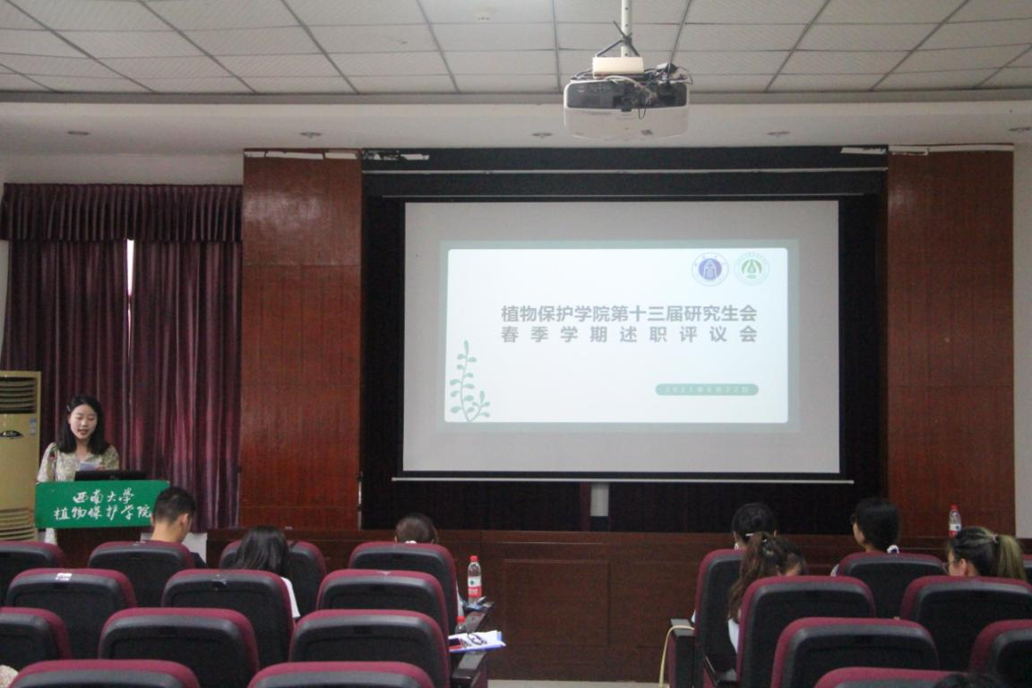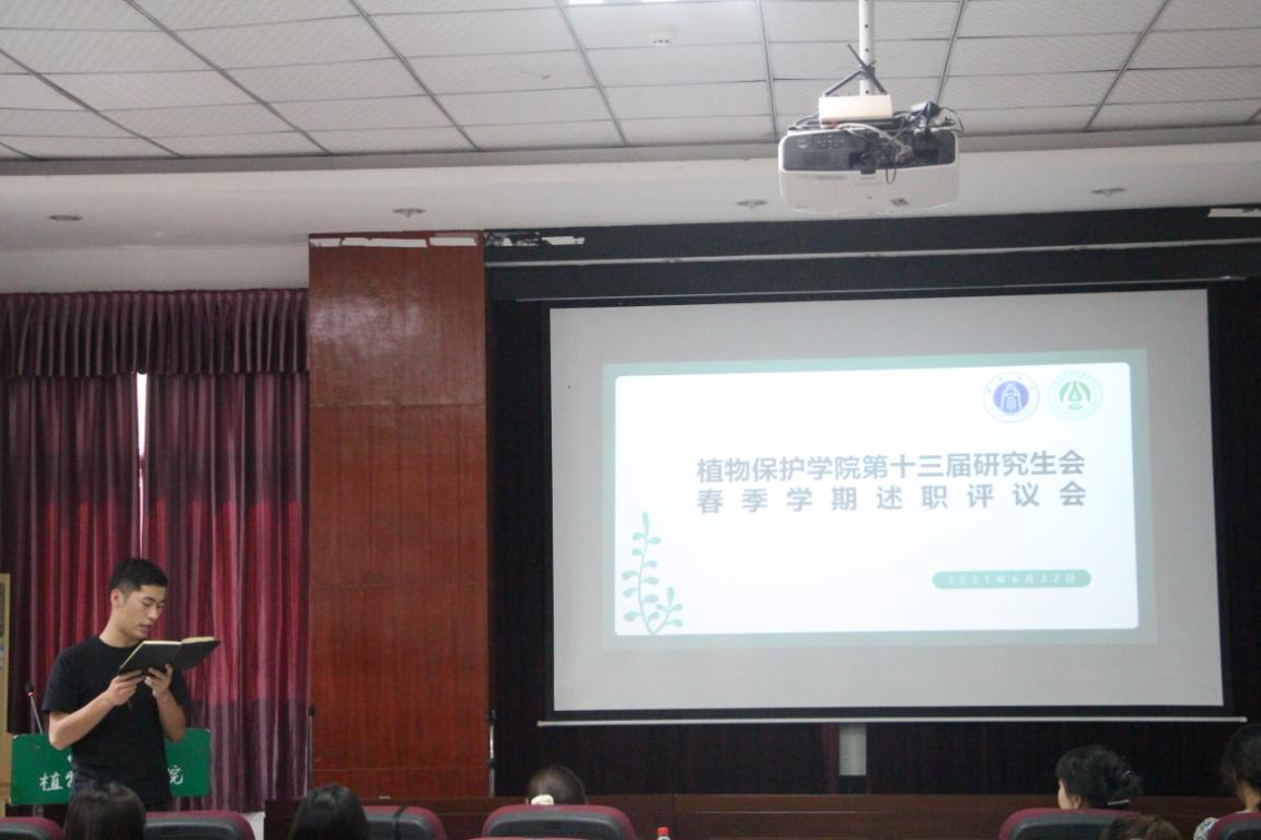 6月22日下午,植物保护学院研究生春季学期述职评议会于三十四教学楼报告厅召开,会议由杨旎主持,辅导员严潇漪、校研会代表、二级研会代表、研究生会各部门负责人及学院研究生代表参加了此次会议。
