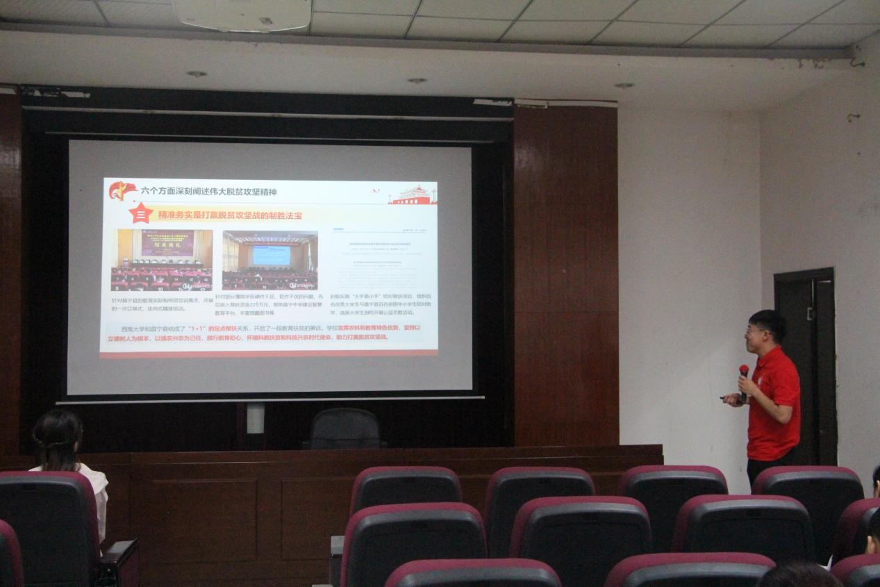 来自第一宣讲组的两位优秀代表用平实的语言、生动的事迹、真挚的情感讲述了奋斗在脱贫攻坚一线英雄的扶贫事迹,展示了我国在脱贫攻坚上取得的巨大成绩。