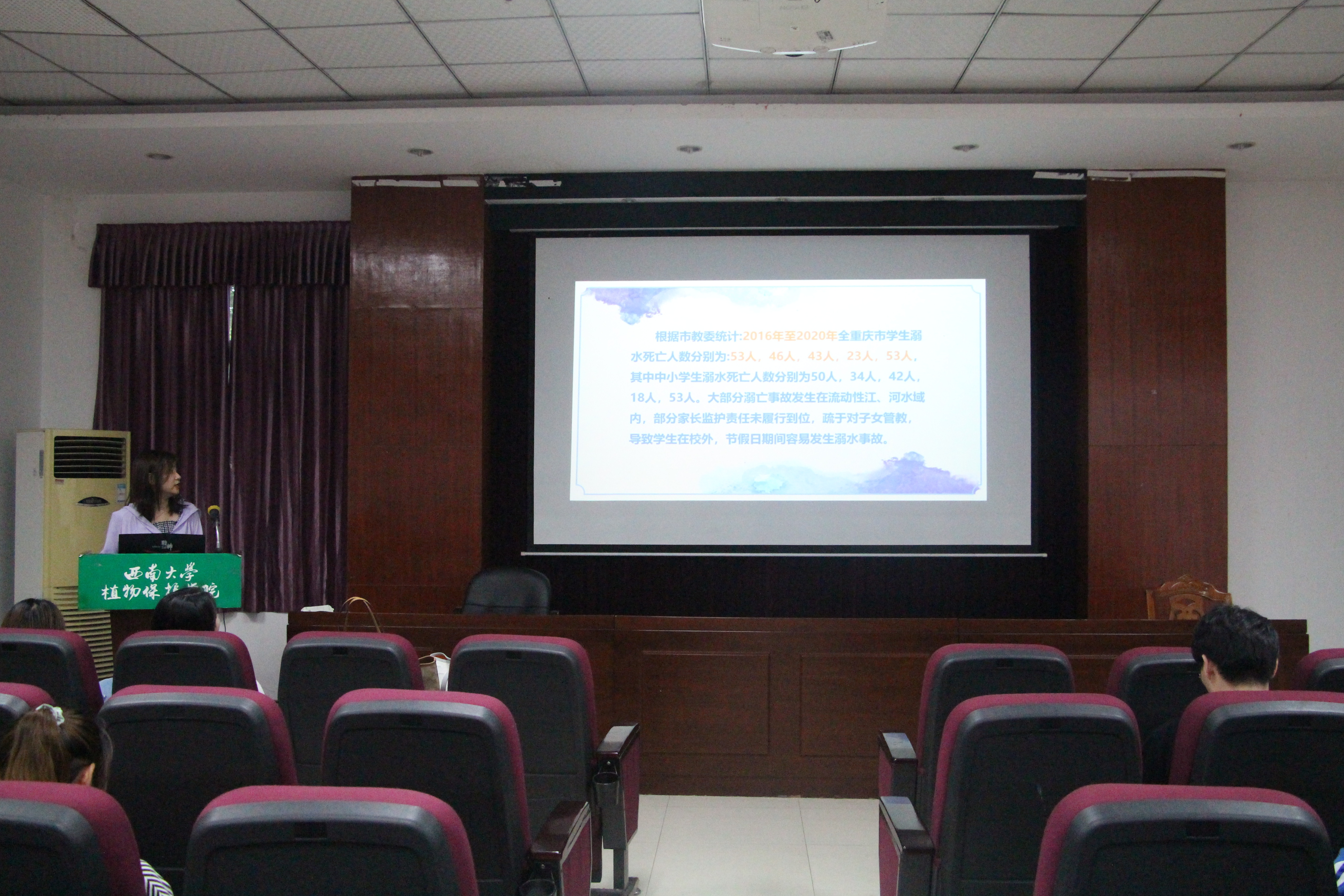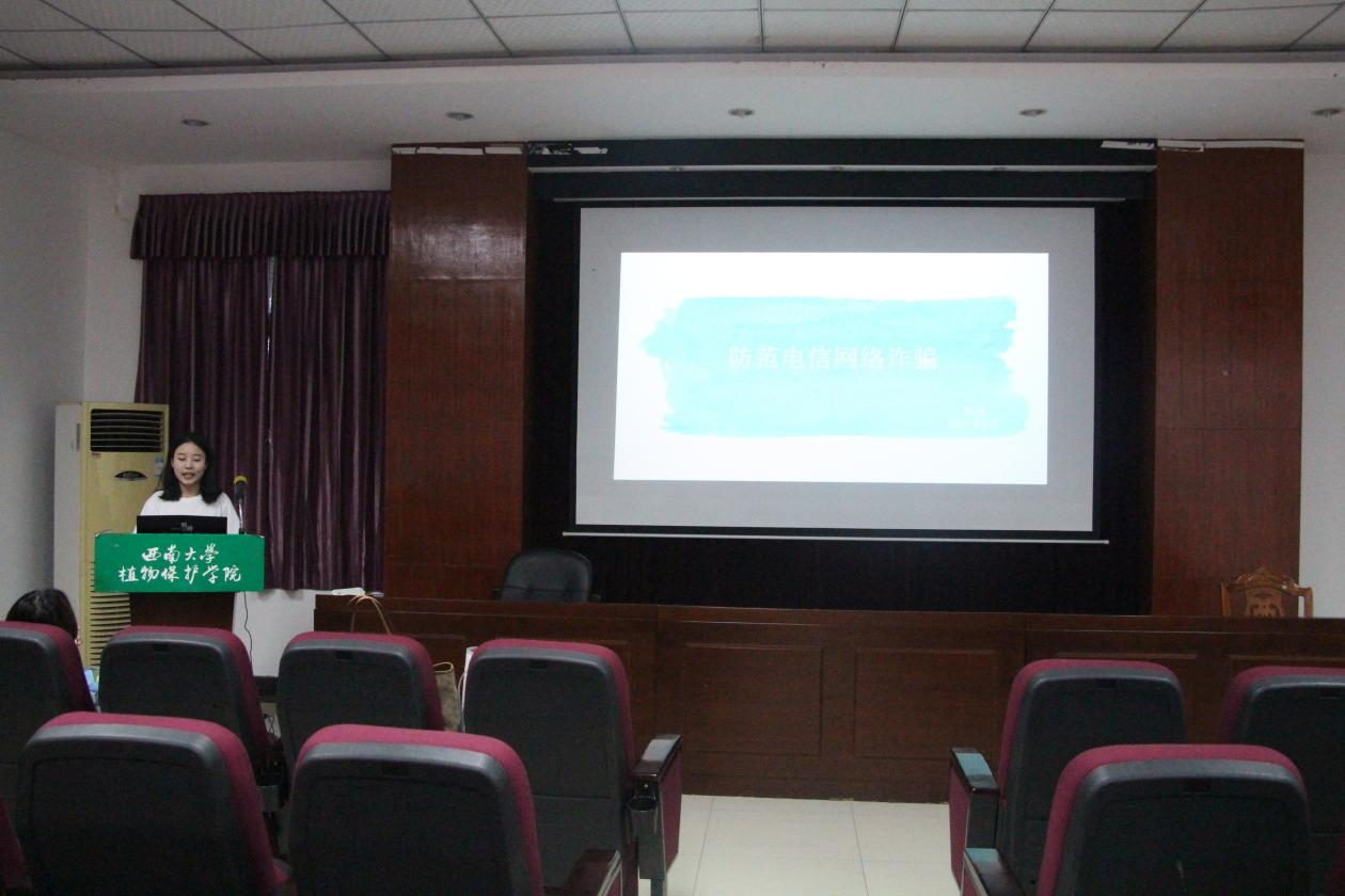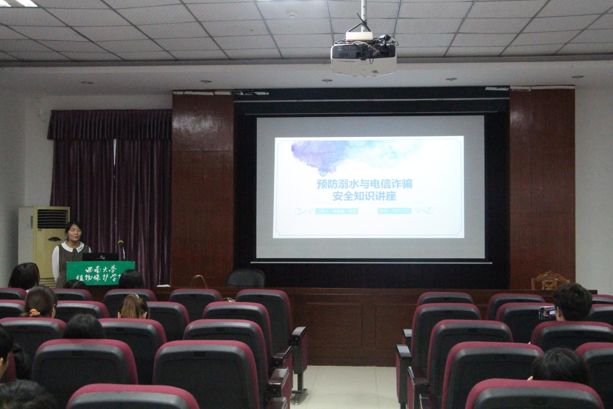 5月27日晚上,植物保护学院“预防溺水与电信诈骗”安全知识讲座在学院四楼报告厅成功举办。本次讲座由姜智馨、杨旎同学主讲,学院全体研究生参加。
