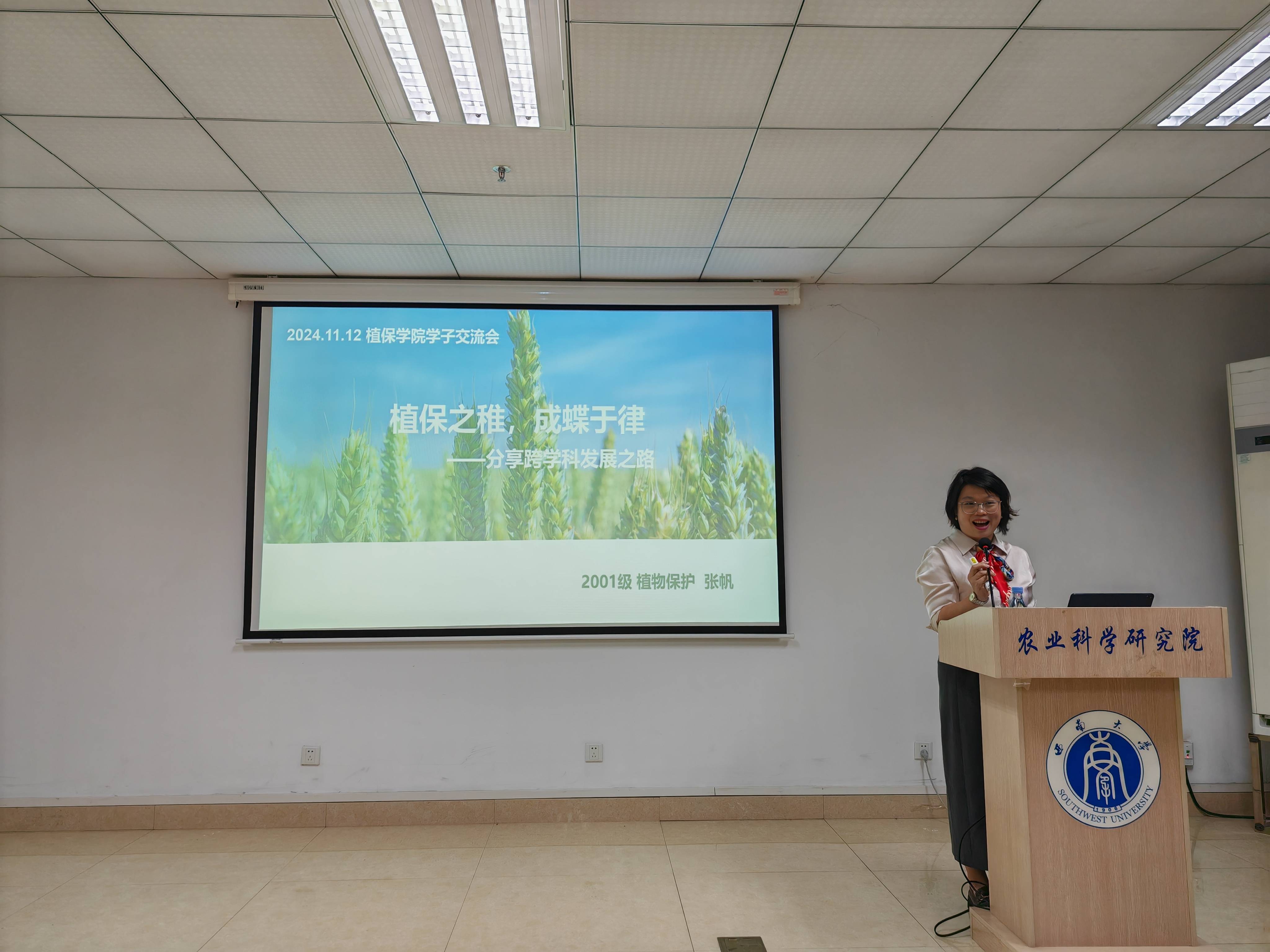 为帮助植保学子更全面地认识和规划自己的学习与职业发展,11月12日下午,我院特别邀请了2001级植物保护专业本科校友张帆,在农科科学研究院205报告厅与同学们分享她的专业成长和综合发展经验。此次活动吸引了我院各年级学生代表的踊跃参与,由学院团委书记兼学工办主任张周飞老师担任主持。