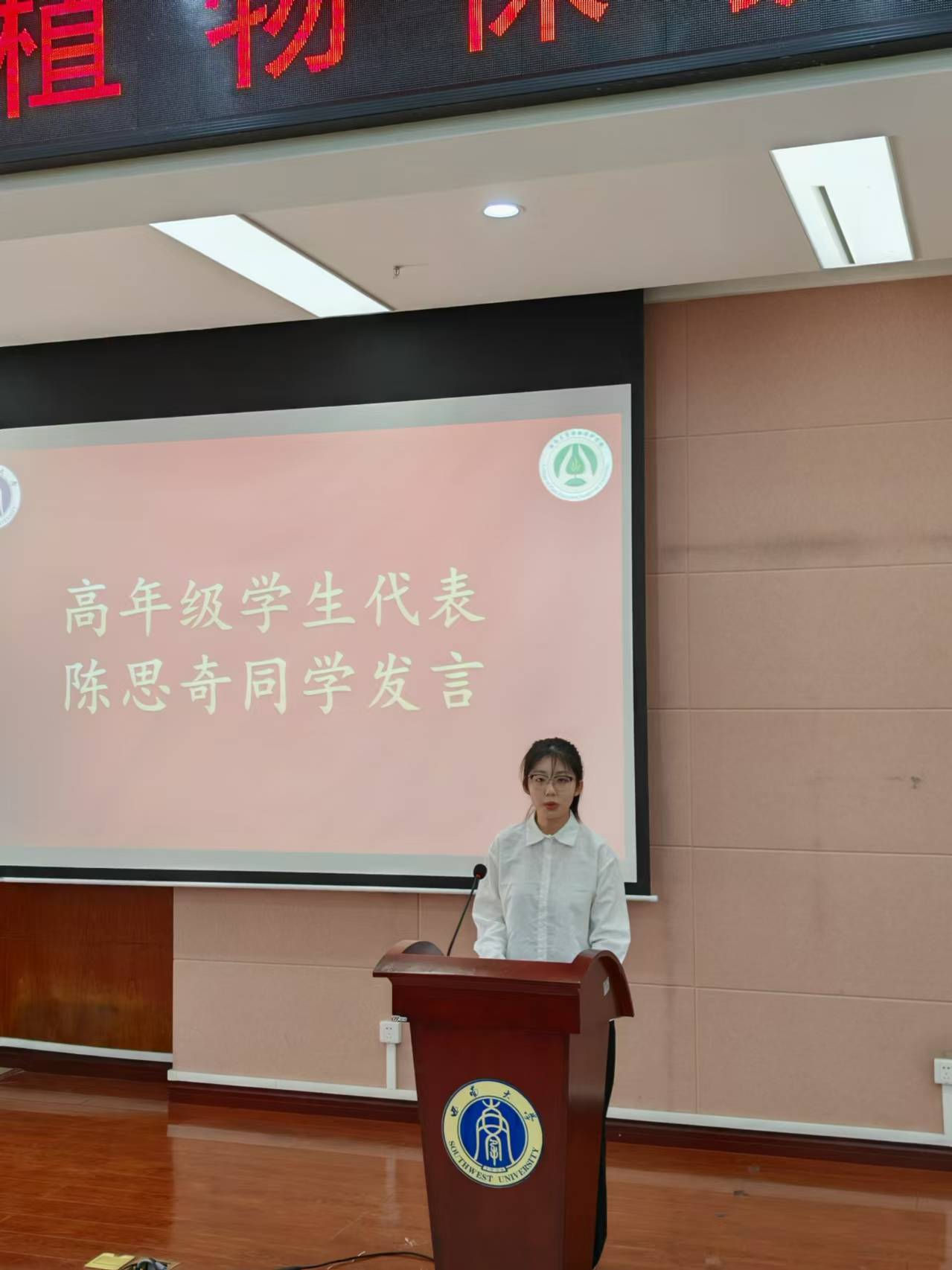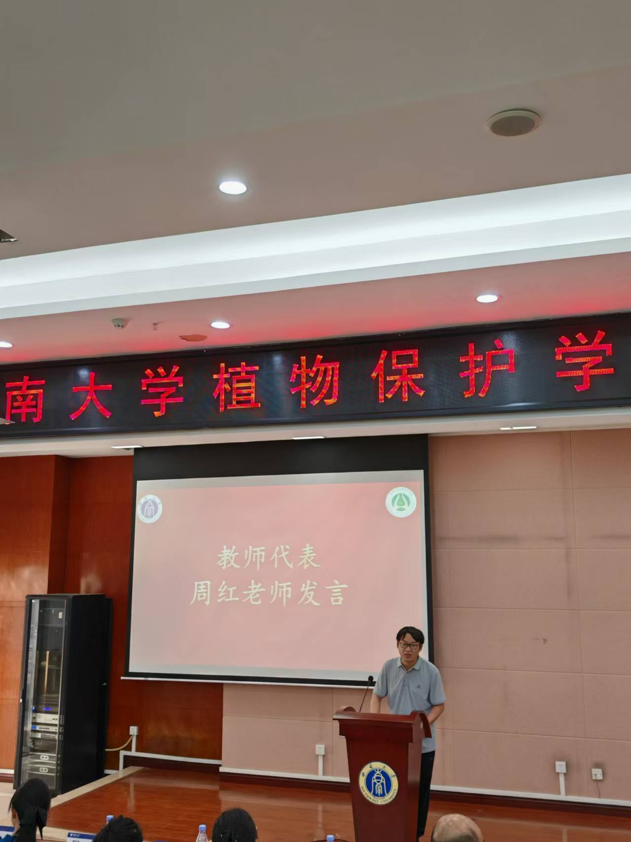 周红老师作为教师代表,介绍了自己在植物保护学院的学习经历,强调了作为本地培养的人才对学校的归属感和感激之情。提出了三个方面的建议:一是希望学生们以服务农业为己任;二是鼓励学生刻苦学习,追求学术卓越;三是要严格自律,追求真理。他希望同学们应该以服务农业为己任,致力于科研工作;要利用学校资源,努力学习和锻炼,提升个人能力。