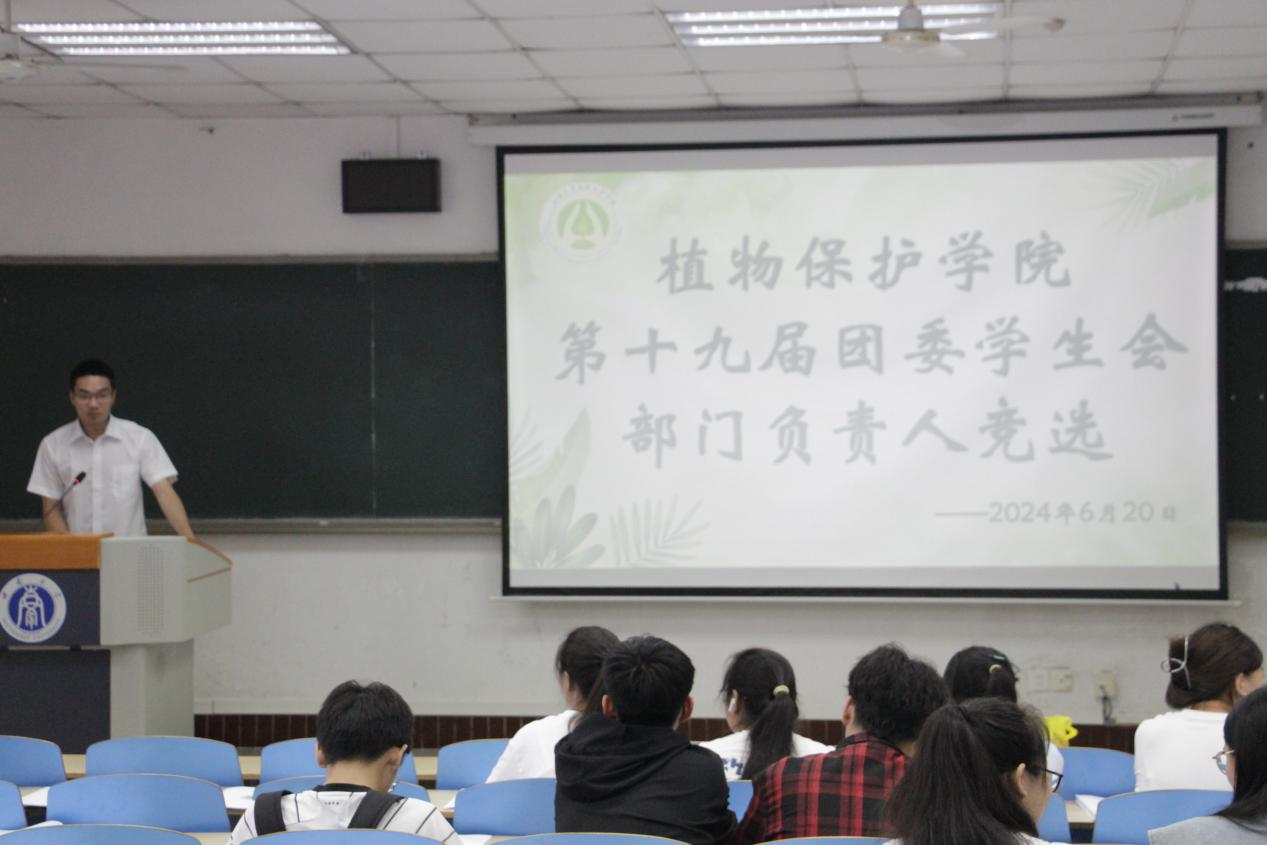 6月20日下午,植物保护学院第四次学生代表大会和第十九届团委学生会部门负责人竞选在三十二教学楼313室召开本次大会旨在选举新一届学生委员会,为学院发展注入新活力。