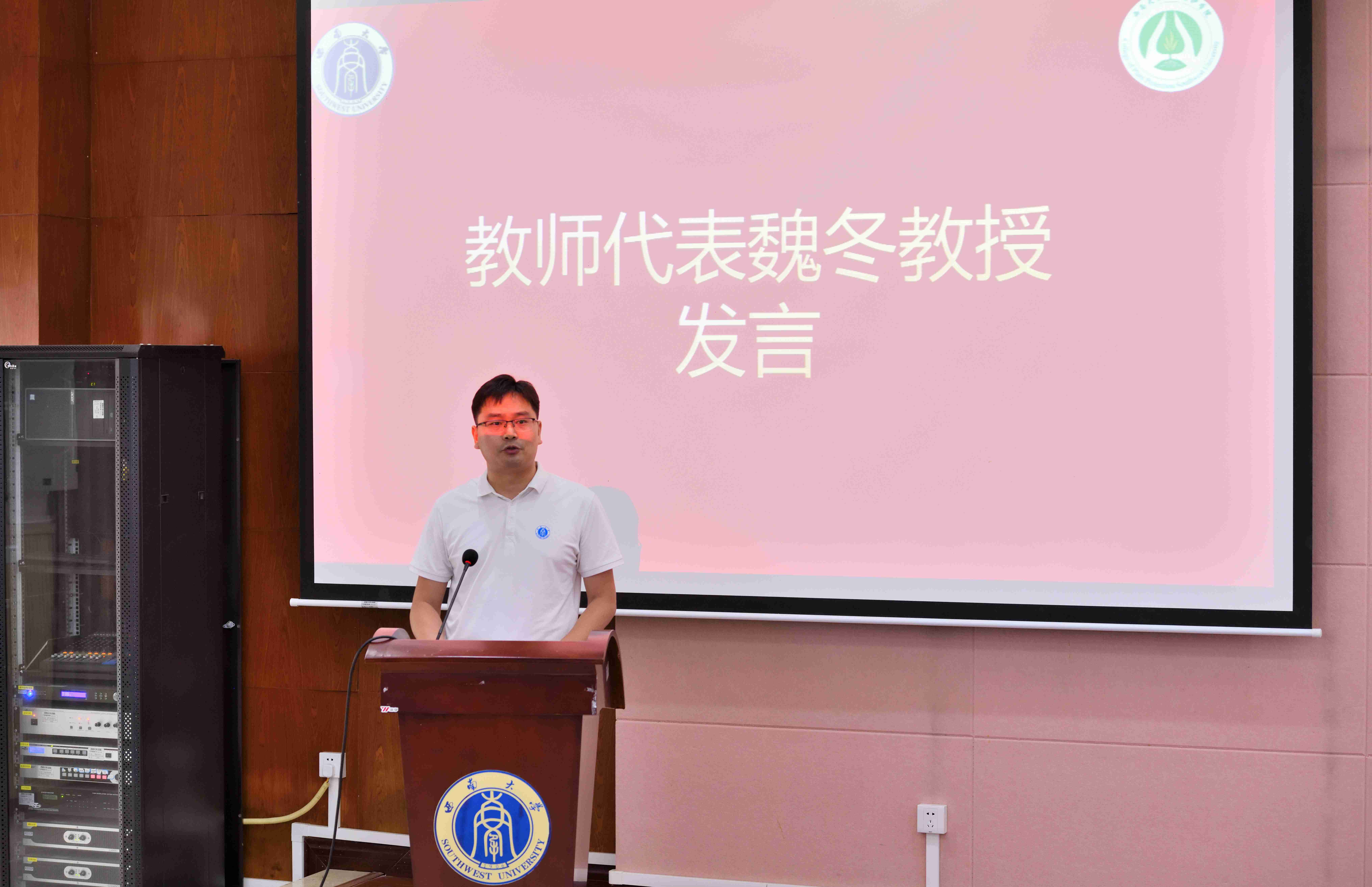 教师代表、昆虫系教师魏冬教授在发言中向全体毕业生表示衷心的祝贺与祝福,他希望大家在以后的工作和生活中,能够体现出植保人的专业性,继续关注社会、关注民生,积极承担社会责任,发挥自己的专业特长,为保护生态环境、促进农业绿色可持续发展贡献自己的力量。