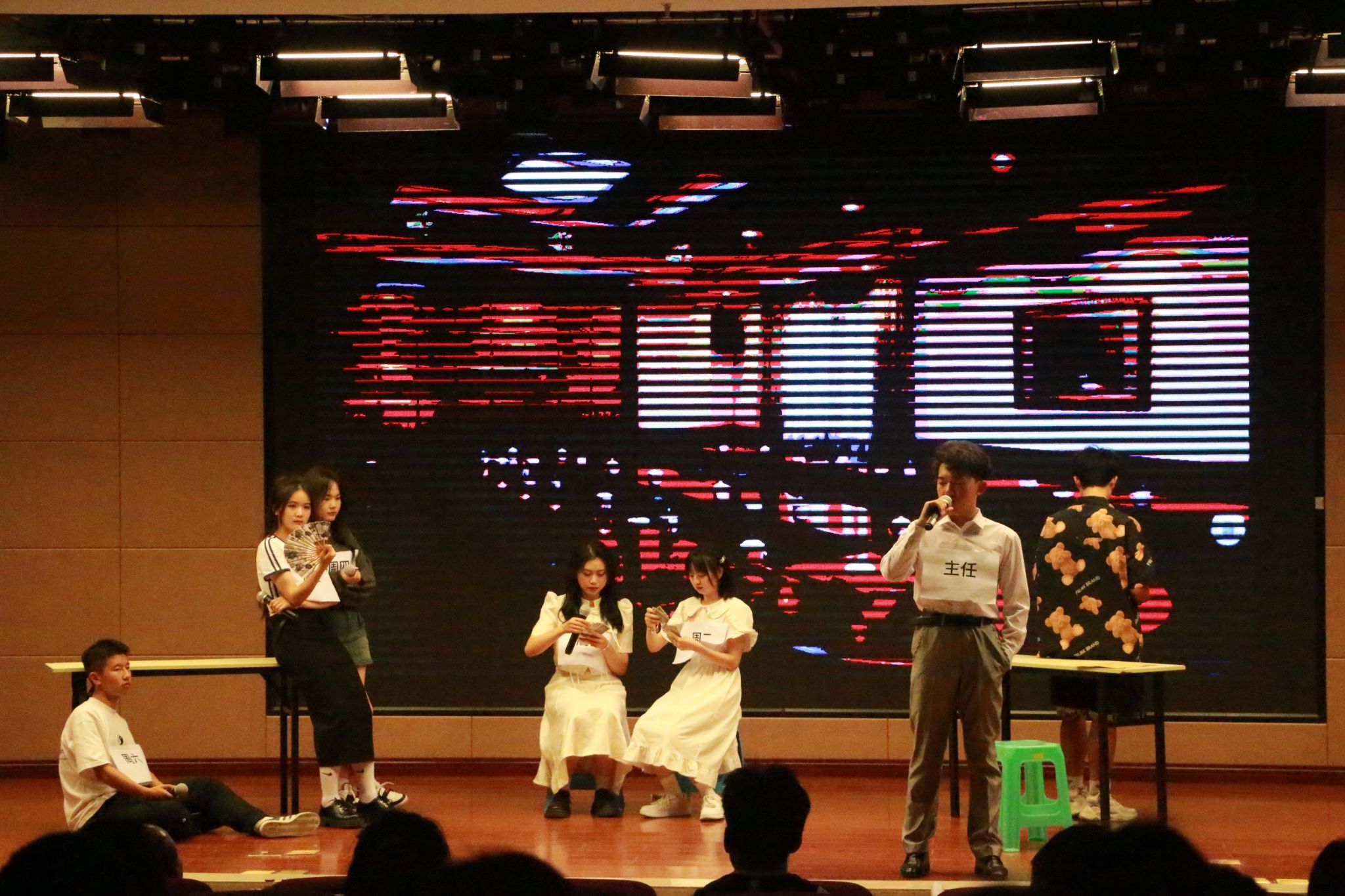 由舞蹈部带来舞蹈串烧《Dance the night a way》拉开了本次晚会的帷幕。青春洋溢的舞步点燃了全场的热情。全场节目分为三个篇章进行,第一个篇章是“忆峥嵘岁月——过往”。首先是语言部带来的歌舞《危险派对》,跳跃的音符演奏着青春的活力,激情的舞蹈荡漾着青春的梦想;随后,声乐部带来了歌曲《飘向北方》,让我们看到了少年的意气风发与热血梦想;语言部带来话剧《谁偷走了我的周日》,为现场营造了轻松愉悦的氛围。第二个篇章是“看今朝辉煌——当下”,舞蹈部带来的舞蹈《Candy》给即将毕业的学生带来一抹微甜;语言部带来的舞台剧《奇迹再现》惊艳全场;由声乐部带来的歌曲《记念》牵动着每一位毕业生的心弦,台下观众也纷纷跟唱“我只想要铭记这瞬间,我们一起做过的光年……”在最后一个篇章“携手启华章——未来”里,毕业晚会走向尾声。舞蹈部带来的舞蹈《Shooting star》祝福每一位即将毕业的同学前程似星般闪耀;由声乐部带来的歌曲《See you again》,青春不说再见,青春永不散场;结尾由全体工作人员配音加演唱《毕业那些事》,大学四年里那一帧帧记忆深刻的画面浮过脑海,珍藏心中。最后,团委书记张周飞进行简单的总结发言,希望大家不忘初心,继续前进,常回家看看!