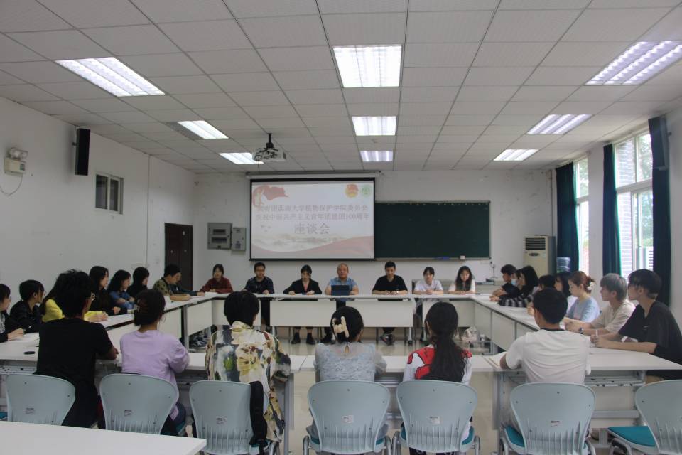 5月20日,植物保护学院团委在学院224会议室举行庆祝中国共产主义青年团建团100周年座谈会,植物保护学院团委书记张周飞、团委学生会主席团及各部门负责人参加会议。会议由院团委副书记余偲主持。