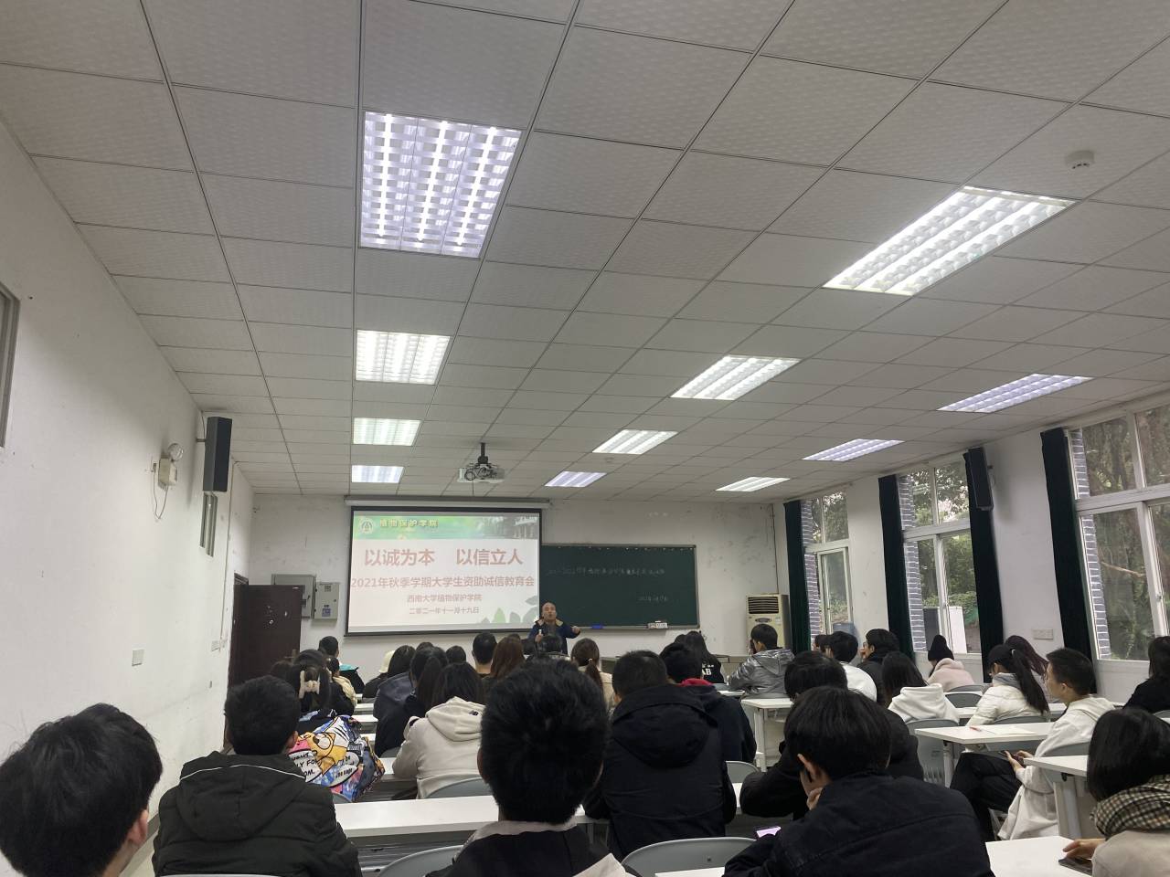 11月19日下午,植保保护学院在学院224大会议室召开2021年秋季学期诚信教育大会,学院各年级助学贷款申请者及其他学生代表60余人参加了本次教育大会,活动由学院团委书记张周飞老师主持。
