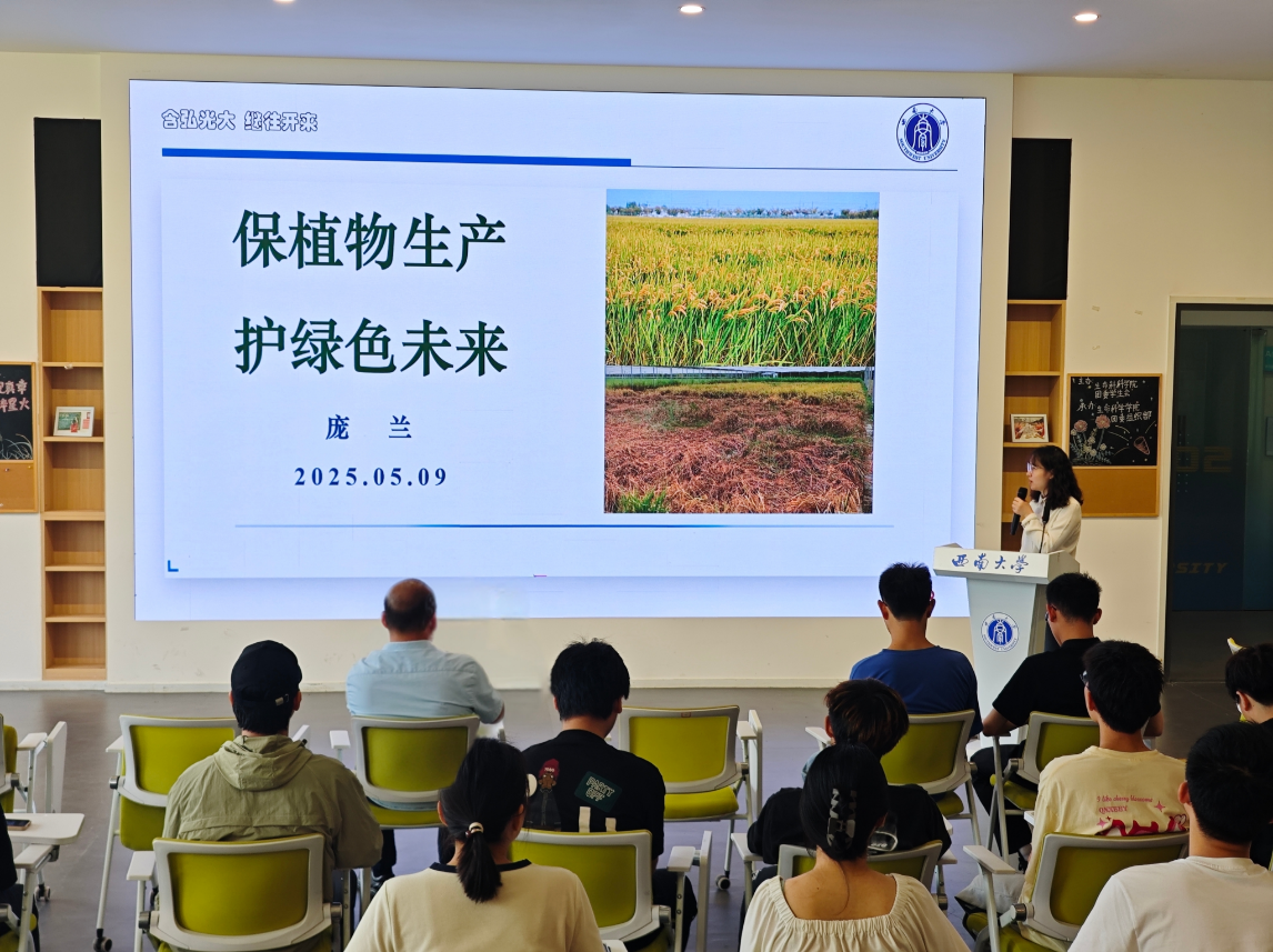 植物保护学院特聘教授庞兰以 “保植物生产,护绿色未来” 为主题,深入浅出地阐述了植物保护的重要性。她指出植物保护关乎粮食安全与生态平衡,通过介绍植物病害、农业害虫及杂草等植物生长面临的威胁,展示了植保技术在保障作物产量与品质方面的关键作用,强调综合防治策略及新兴技术融合是植保发展的必然趋势。