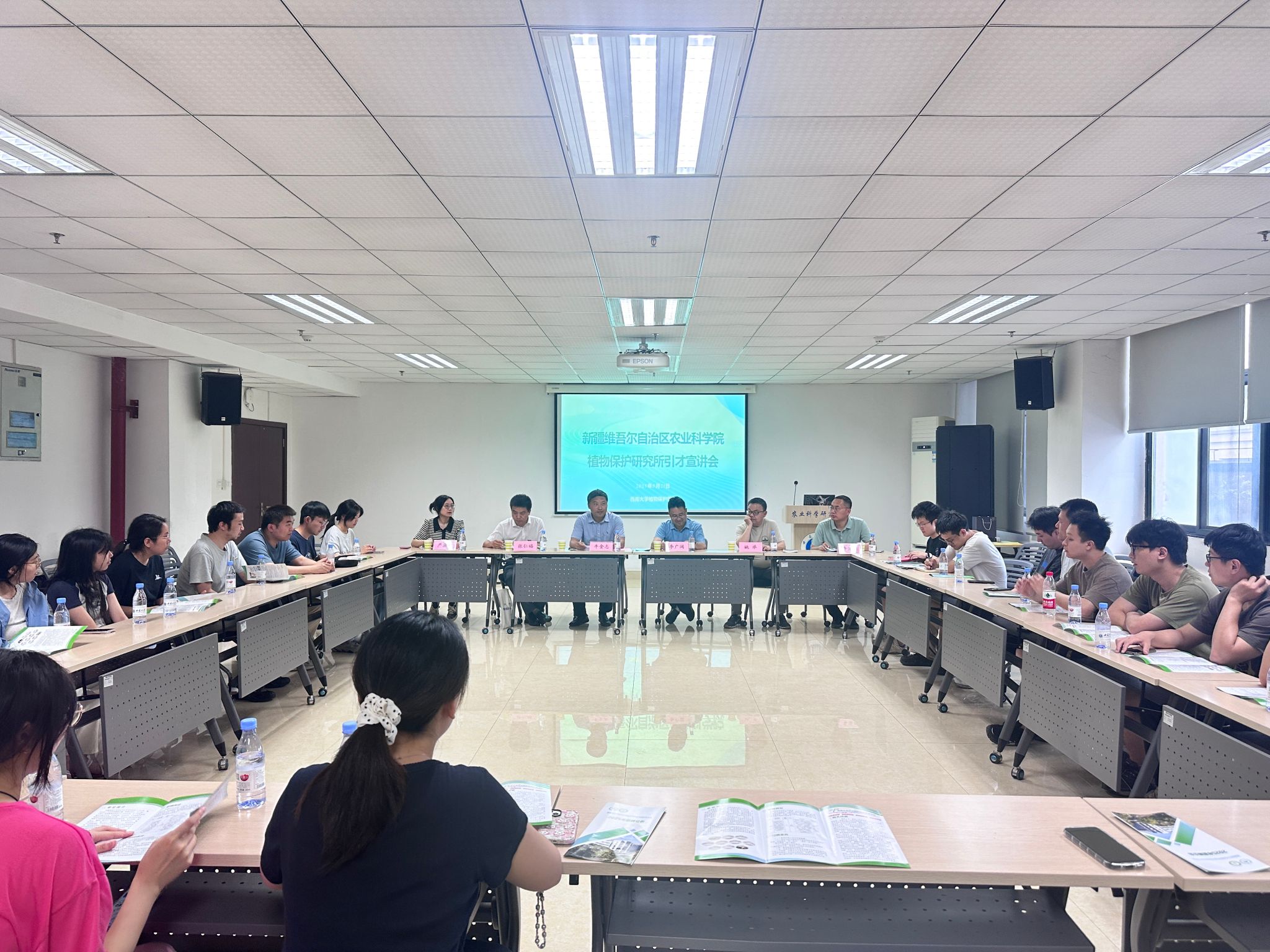 5月21日下午3点,新疆维吾尔自治区农业科学院植物保护研究所在隆平楼205会议室举办“引才宣讲会”。活动聚焦植物保护领域前沿科研需求,围绕研究所的科研布局、人才政策及未来发展规划展开,旨在吸引优秀青年学者投身西部农业科技创新。新疆维吾尔自治区农业科学院植物保护研究所所长李广阔研究员、植物保护学院副院长牛金志、新疆维吾尔自治区农业科学院植物保护研究所副所长张仁福研究员、首席专家姚举研究员、首席专家李海强研究员出席了此次宣讲会。会议由牛金志主持。学院研究生辅导员严潇漪和部分博士研究生参加了本次宣讲会。
