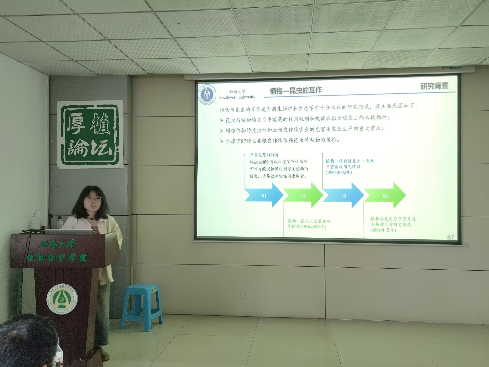 本次论坛聚焦于农业昆虫与害虫防治领域,设置学生学术汇报、评委点评和互动问答三个环节。