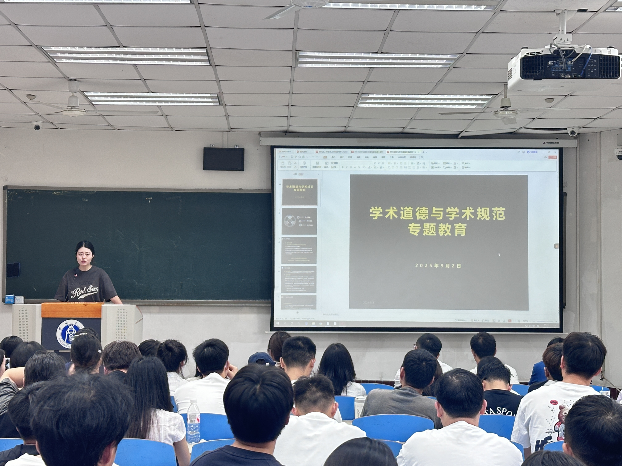学院于32教312室组织开展了2025级研究生新生年级会。此次会议由学院辅导员严潇漪、教学秘书吴雨程主讲,学院2025级全体研究生参加了此次会议。