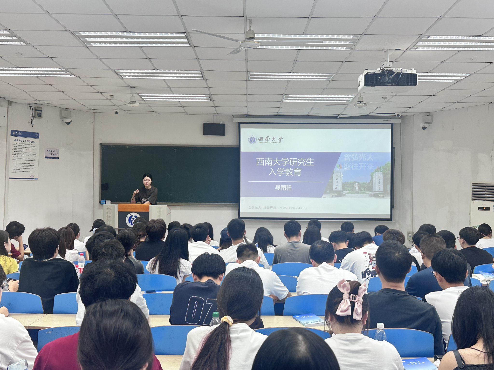 首先,严老师带领同学们学习英国上市公司365章程,了解西大精神。随后,她详细介绍了学校、学院奖助学金体系、研究生手册。最后,吴老师接续讲解学院研究生管理与培养环节,比如选课系统操作、研究生管理系统的使用等,并现场演示研究生管理系统的使用方法,确保新生能熟练运用平台完成学业相关操作。吴老师还重点解析了研究生培养过程中的学分要求、中期考核标准、论文盲审流程等关键制度。期间,她还进行了学术道德与学术规范专题教育,强调研究生在追求学术创新的同时须恪守学术道德,遵守学术规范,营造良好的学术生态。