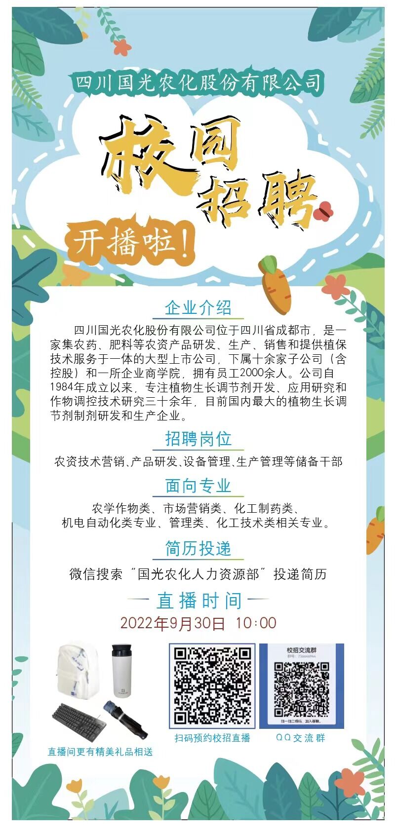 四川国光农化股份有限公司2022年秋季招聘