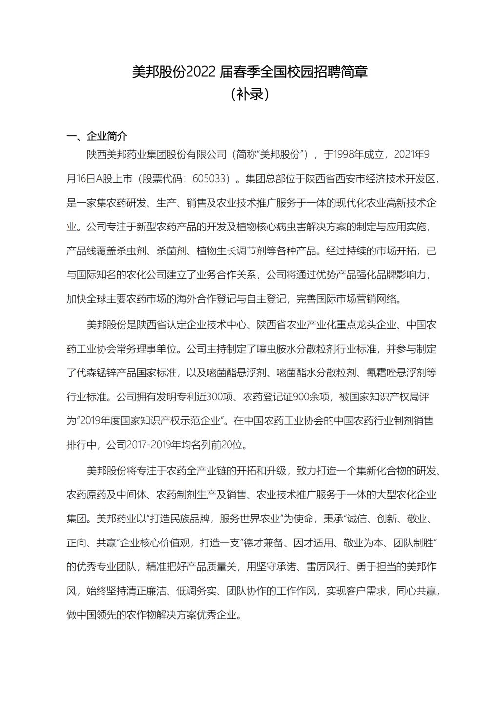 美邦股份2022届春季全国校园招聘简章(补录)