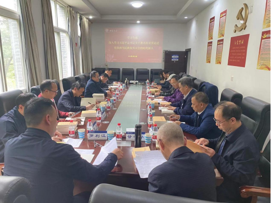 4月26日,刘怀、刘建长、唐永斌、高德香分别领学《习近平著作选读》第一卷、《习近平著作选读》第二卷、《习近平新时代中国特色社会主义思想专题摘编》、《习近平新时代中国特色社会主义思想学习纲要(2023版)》相关原文内容,蒋红波、罗利江、汤晓荣、刘涛结合自身工作实际,进行主题发言,发言内容深入浅出,现场讨论气氛热烈。