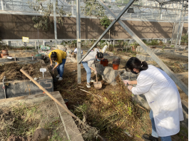 下午,团队成员结合研究工作,前往玻璃温室进行清扫整理工作,小组成员完成了12个试验池共70余平方米范围的杂草和杂物清理、土壤翻整及杀虫消毒等工作,为后续试验研究的顺利开展打下了坚实的基础。对此,团队负责人丁伟教授表示,实验平台需要大家共建共享、共同维护,希望大家充分、高效利用学院现有平台和资源,科学有序开展相关研究,加强个人的主人翁意识,自觉维护玻璃温室及其他实验平台设施设备,同时,团队成员也要发挥主观能动性,瞄准目标,通过学院现在资源撬动学校及其他科研单位资源,依托先进科研团队和平台、借助先进科学技术提升团队研究水平。丁伟教授还强调,科学研究要始终瞄准解决社会生产的实际问题,研究室的研究课题要始终与国家和社会发展需求相统一,重视理论创新和突破的前提下,也要积极推进理论技术化、技术产品化、产品简单化,为更好的服务产业、创造社会价值提供理论和技术支撑。