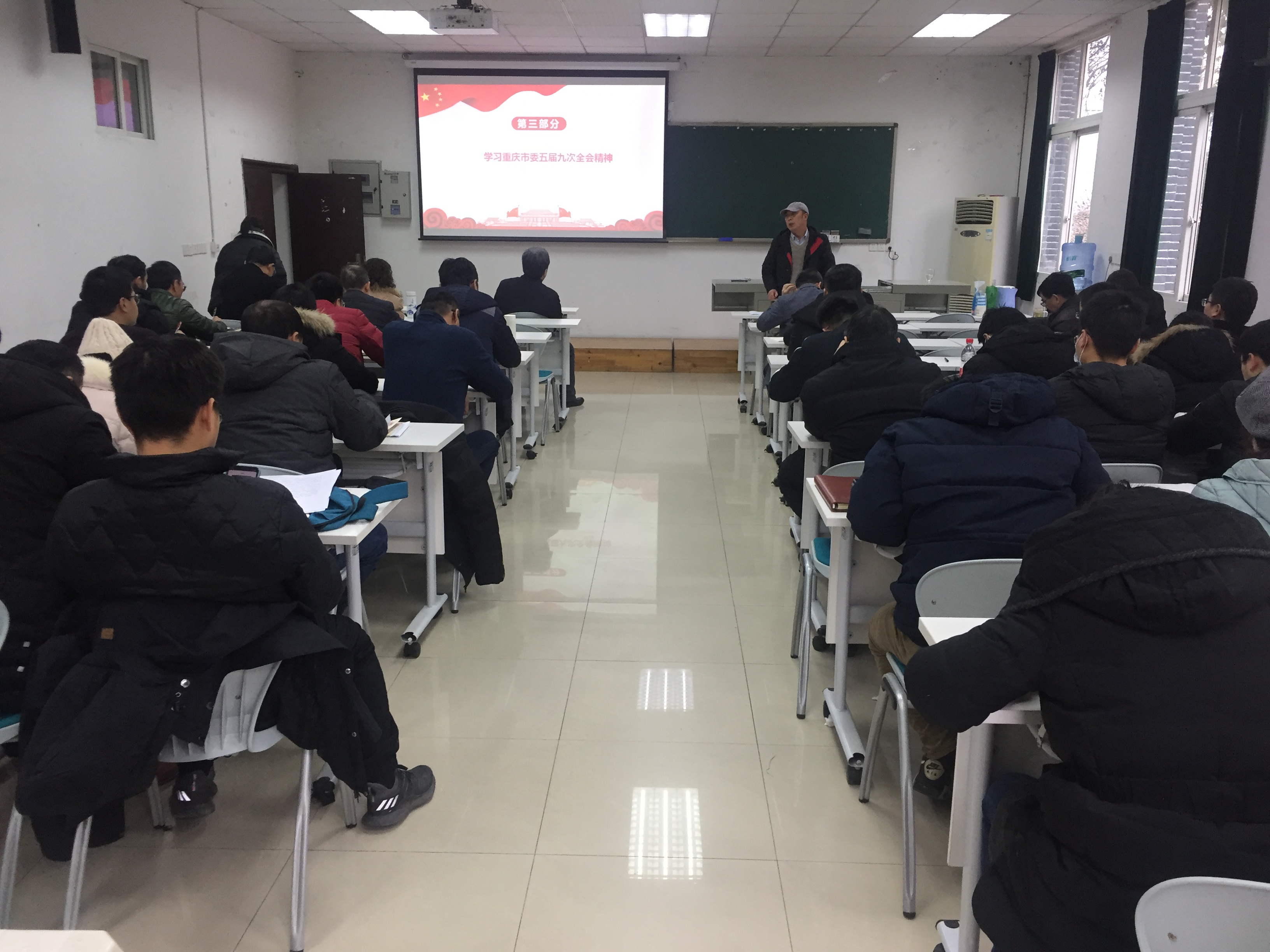 再次,副院长蒋红波同志领学《重庆市委五届九次全会精神》,他指出,“十四五”时期是全是谱写高质量发展新篇章、开启社会主义现代化建设新征程的关键时期,建设中国科学城——西部,使之成为具有全国影响力的重要经济中心、科技创新中心、改革开放新高地、高品质生活宜居地,在新的发展阶段,围绕“十四五”11项重点任务,落实中央和学校的部署,推动学院各项事业取得新的更大的发展。