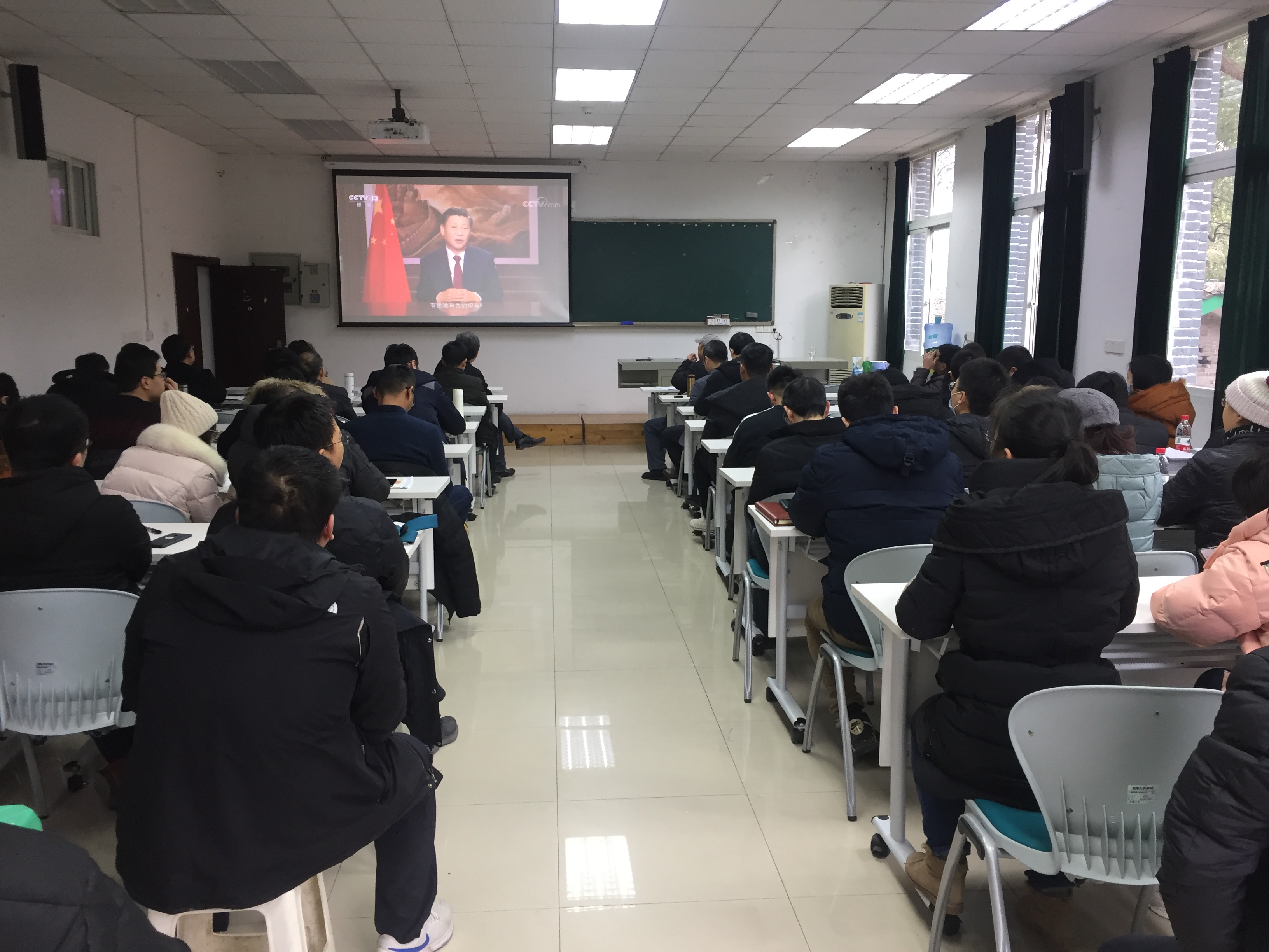 1月8日下午2:30,2021年第一次教职工政治理论学习在学院224会议室举行,会议由学院党委书记唐荣发同志主持。首先,全体教职工集中观看了视频《习近平总书记二〇二一年新年贺词》,习近平总书记发表的新年贺词引发热烈反响。教职工表示,习近平总书记深情点赞人民,令人鼓舞,催人奋发,将乘风破浪、扬帆远航,继续奋斗、勇往直前,创造更多的成绩。