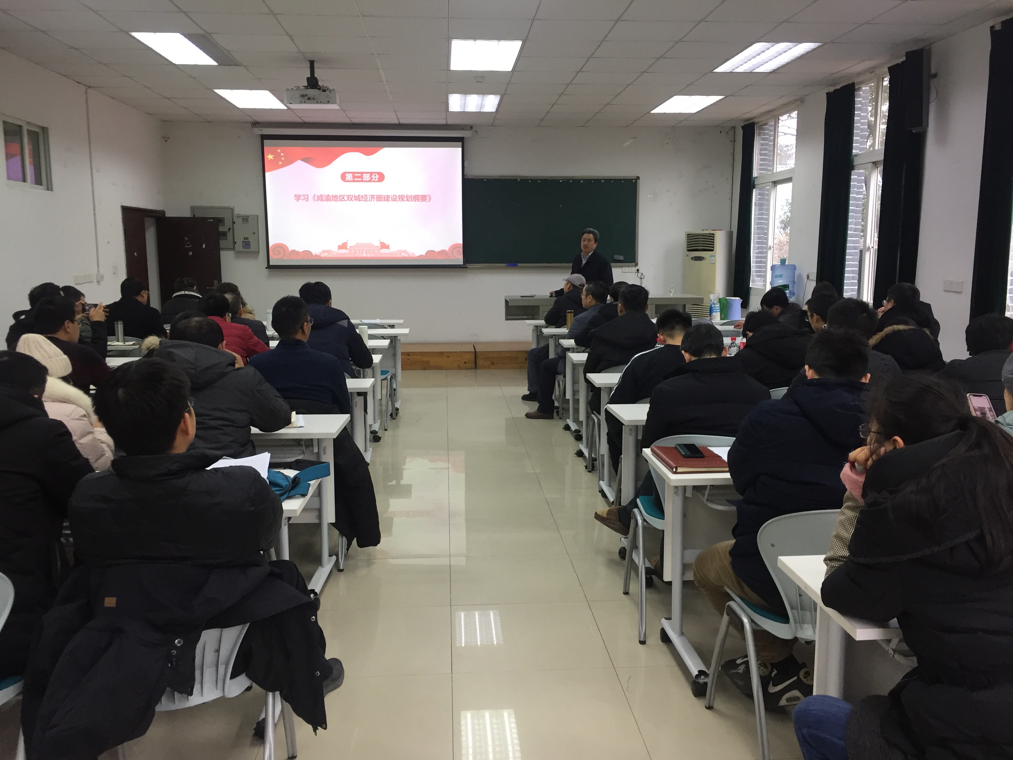 其次,院长刘怀同志领学《成渝地区双城经济圈建设规划纲要》,刘院长主要从建设要求、国家战略和发展意义对规划进行了解读,要全面落实党中央决策部署,突出重庆成都两个中心城市的协同带动,注重体现区域优势和特色,成渝地区牢固树立一盘棋思想和一体化发展理念,健全合作机制,打造区域协作的高水平样板。