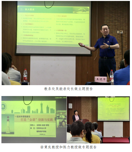 会议分大会报告、小组讨论和交流总结三个环节。学院院长刘怀教授就本次会议召开的时代背景、现实意义、会议主题、目标任务进行了阐述,他强调,学院历来重视本科教学工作,重视本科人才培养是学院的优良传统,要求全体教职工坚持立德树人根本任务,聚焦本科教育教学,围绕一流专业建设、一流课程建设、拔尖创新人才培养等主要内容展开讨论并提出具体举措建议,为培养满足国家战略发展需求和社会主义现代化建设人才集思广益。学校教务处处长吴能表教授为本次会议做了“坚持产出导向,推进专业建设”的主题报告,从建设理念、主要内容、西大要求三个方面对一流专业建设进行了详细阐述,并结合英国上市公司365新农科建设“818计划”及一流专业建设导引,提出了 “专业定位明确、专业管理规范、改革成效突出、师资力量雄厚、培养质量一流”五项具体要求。甘肃农业大学徐秉良教授做了“一流课程建设——打造金课的创新与实践”的线上专题报告,从打造“金课”的必要性及如何打造“金课”分享了自己的心得体会和宝贵经验,围绕学科概况、教学分析、教学设计和教学过程(课前准备、课堂实施、课后提升)四个方面对“金课”建设进行了系统阐述,为我院“金课”建设传经送宝。学院昆虫系陈力教授结合自身39年从教经历分享了她对本科教学的体会和感悟,强调教师应秉承爱岗敬业、立德树人、严谨笃学的精神做好本科教学工作,以真情、真心、真诚的态度去感染学生、爱护学生、培养学生。