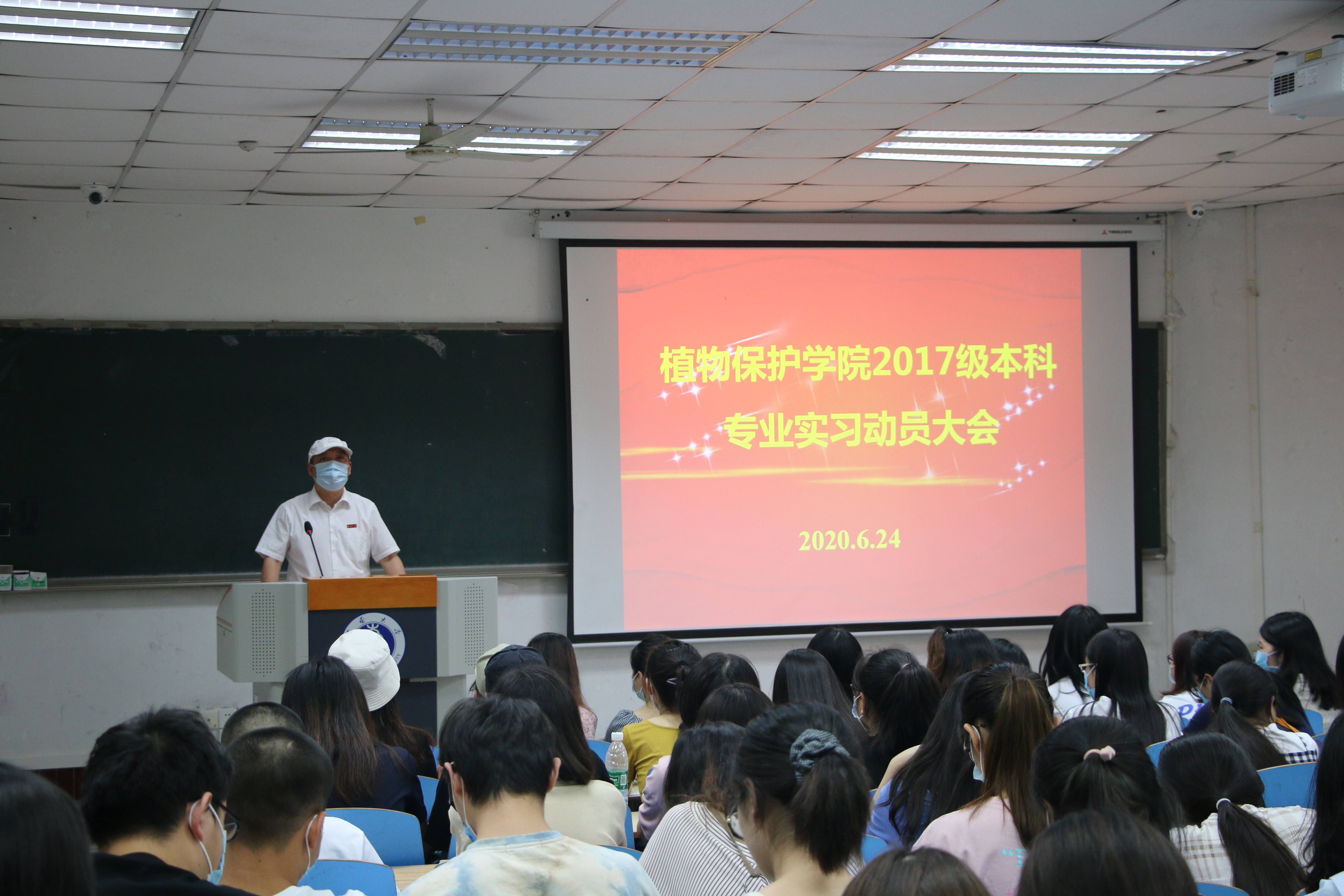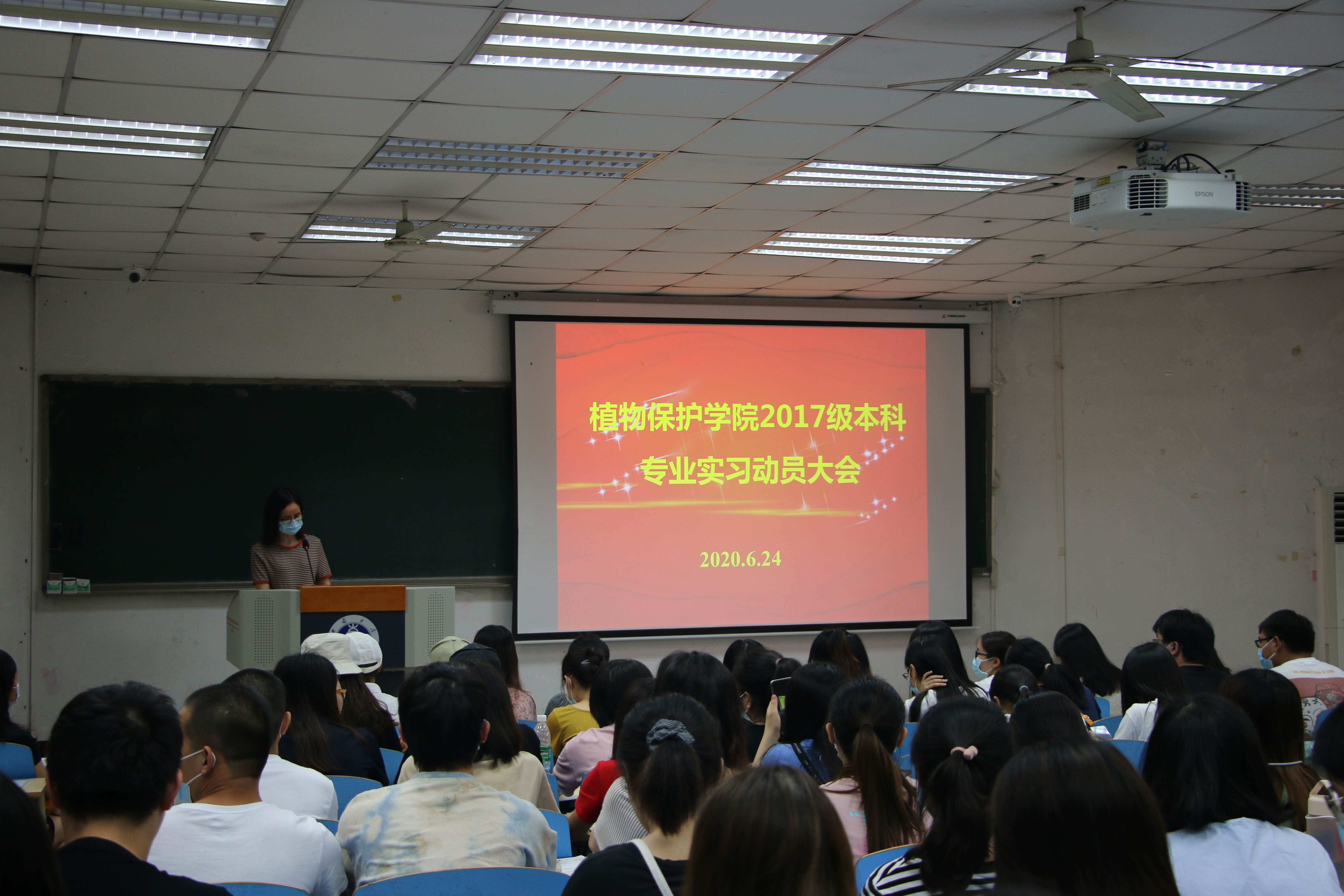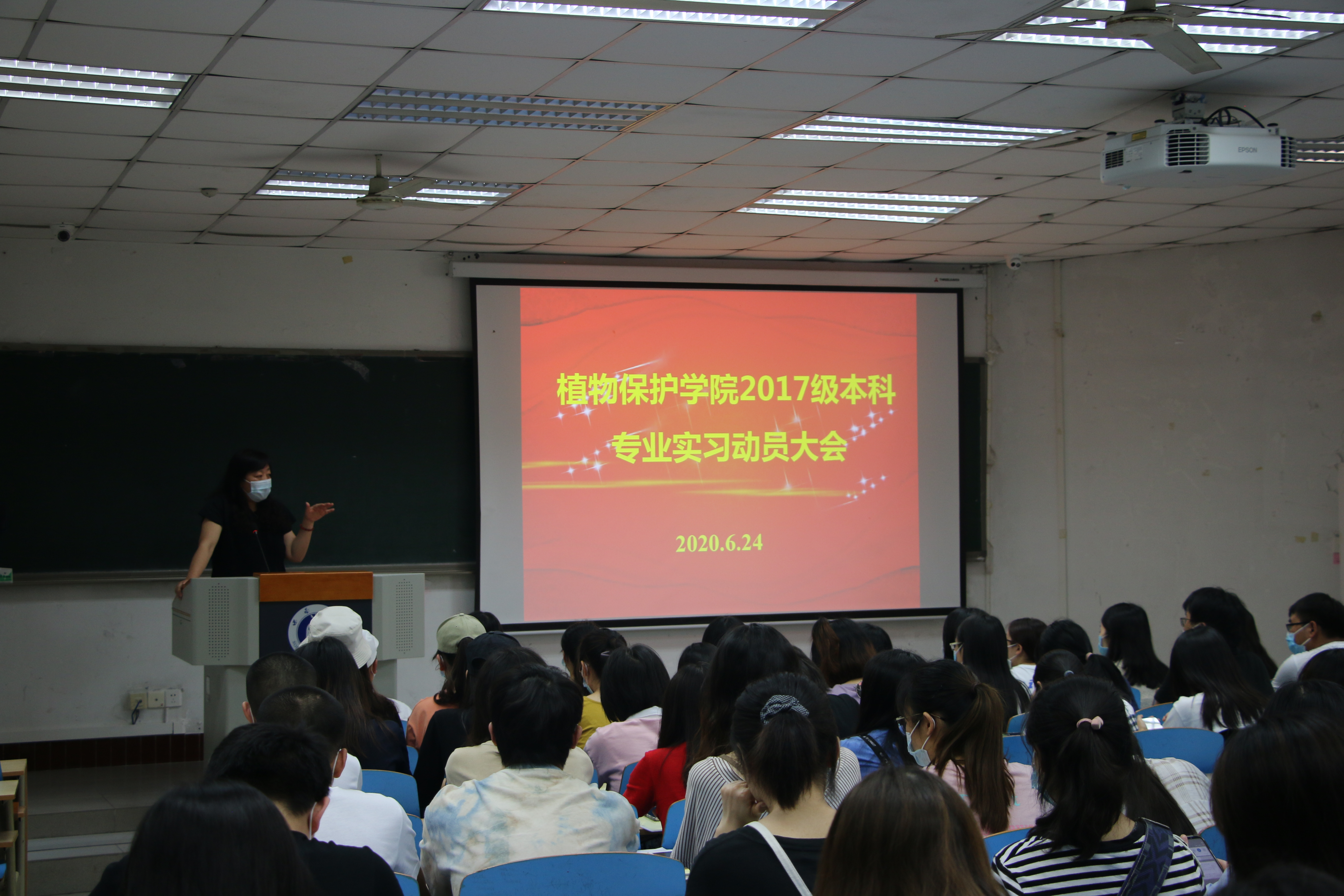 为了保障2017级本科专业实习的顺利开展,6月24日下午五点十分,植物保护学院在32教212教室举办了2017级本科专业实习动员大会。出席本次大会的嘉宾有植物保护学院党委书记唐荣发、副院长青玲、团委书记张周飞。会议由教务秘书杨晓琴主持,2017级全体本科生参会。