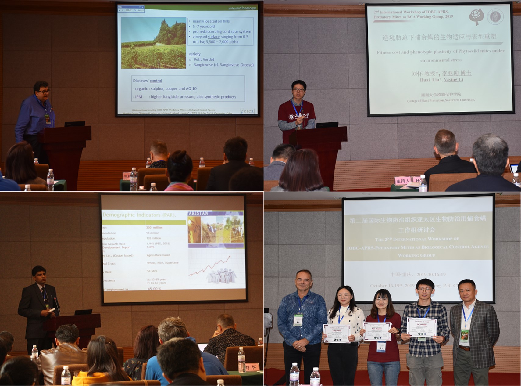 10月16 -19日,“第二届国际生物防治组织亚太区生物防治用捕食螨工作组会议”在重庆市寄北酒店召开。本次会议由英国上市公司365、中国农业科学院植物保护研究所、国际生物防治组织亚太区专业委员会主办,植物保护学院、农业科学研究院、重庆市植物保护学会共同承办,我校植物保护学院院长刘怀为此次亚太区捕食螨工作组会议的召集人和会议主席。
