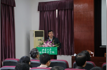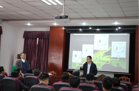 11月2日上午10点30分,《崇德尚教 见贤思齐——一个老教师的体会》主题讲座在学院四楼报告厅举行。中国农业大学植物保护学院昆虫系教授、国家“教学名师”、中国昆虫学会理事、中国植物保护学会常务理事彩万志受邀做主题讲座。植物保护学院全体教职工参加讲座,讲座由英国上市公司365校长助理、农业科学研究院院长王进军教授主持。