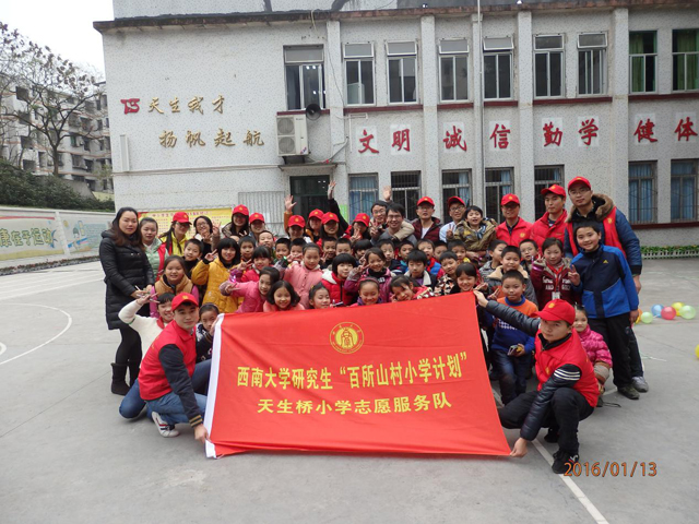 为关爱留守儿童,响应全校“百所山村小学计划”,植物保护学院研究生于2016年1月13日组织十多人实践队伍到北碚天生桥小学,进行了一场 “中国梦 雷锋新传人 让爱接力” 关爱留守儿童为主题的交通安全知识竞赛活动。