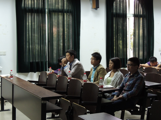 紧接着,今年荣获国家奖学金的冯英才师兄为研一新生未来的三年规划提出了中肯的建议,告诉他们要找准自己的定位,有一个奋斗目标,并为之不懈努力。有读博想法的同学一开始就要把自己当做博士生,对自己高标准严要求,提高做事效率。其他同学在搞好学术的同时还要发展提高各项能力,这样才能充实自己的研究生生活。最后一位分享经验的是刚结束研一生活的胡琴师姐,她年龄与研一新生相当,有着更多的共同语言。她分别从学习,工作和生活三个方面给新生交流了一些自己的看法。由于她热爱生活,积极参与各种活动,喜欢旅行、摄影,更在校级摄影大赛获奖的经历让大家对她非常感兴趣,同学们都积极与她交流,咨询自己感兴趣的东西。