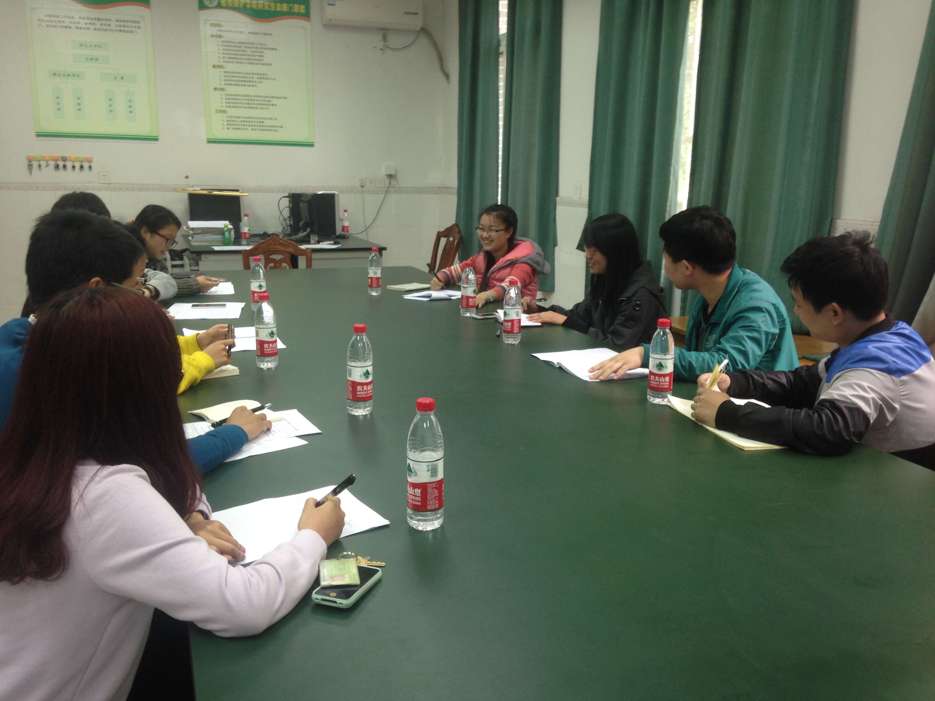 4月10日,资源环境学院、计算机与信息科学学院及我院的研究生会主席团成员和文体部代表于下午3:30在34教115会议室顺利召开了关于"燎原杯"羽毛球赛赛前筹备会。本次会议由我院研究生会主席徐丹主持。
