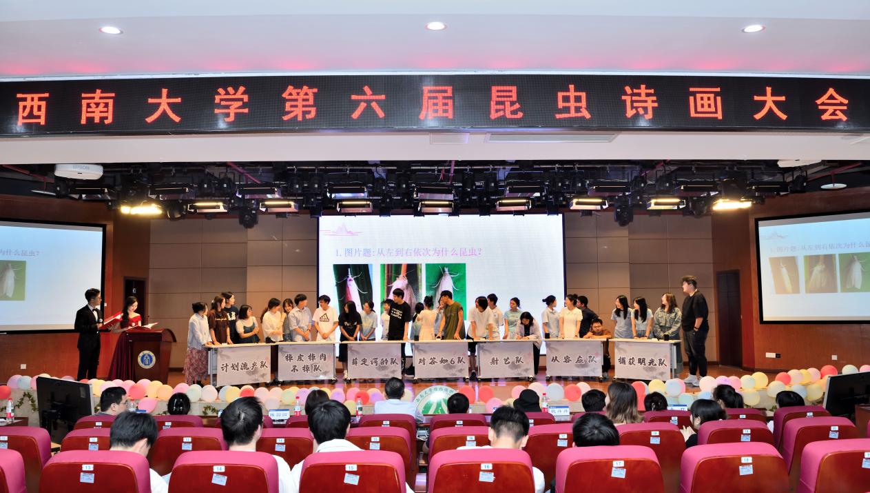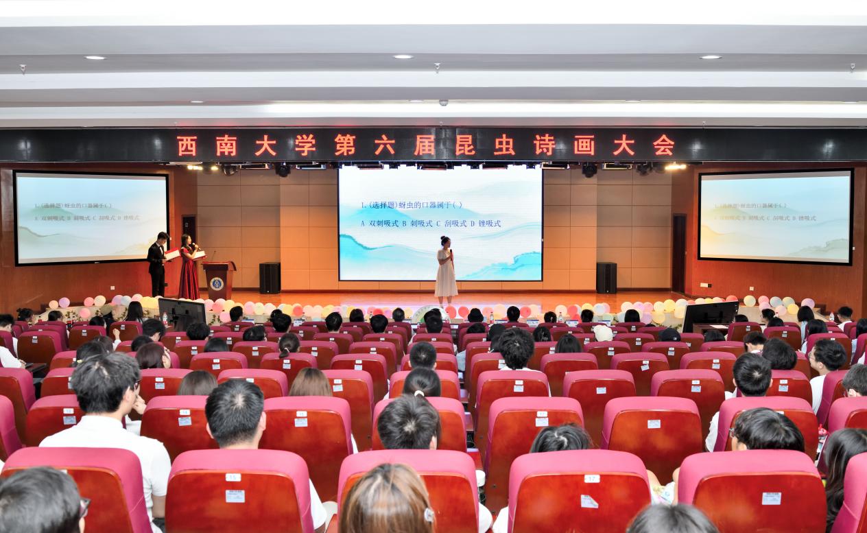 蒋院长致辞后,比赛正式开始,率先进行的是激动人心的个人赛环节,选手们按照事先抽签决定的顺序依次上台进行积分问答与昆虫诗词创作展示。积分答题环节,各位选手大展身手,向观众们展示出惊人的知识储备,同时也有在场的领导和老师针对其研究的昆虫进行专业的知识科普。接下来的诗词创作展示环节,诗词形式丰富,六位选手大展文采,向观众们讲述他们与昆虫的故事,他们眼中的昆虫充满了别样的魅力,充满情感的解读让观众和老师们动容不已。随后,各位领导和老师也进行了点评,或赞赏诗句构思之妙或剖析内涵意蕴之深或讲解其中蕴含的昆虫知识。让观众们对诗画与昆虫的融合有了更深刻地理解。