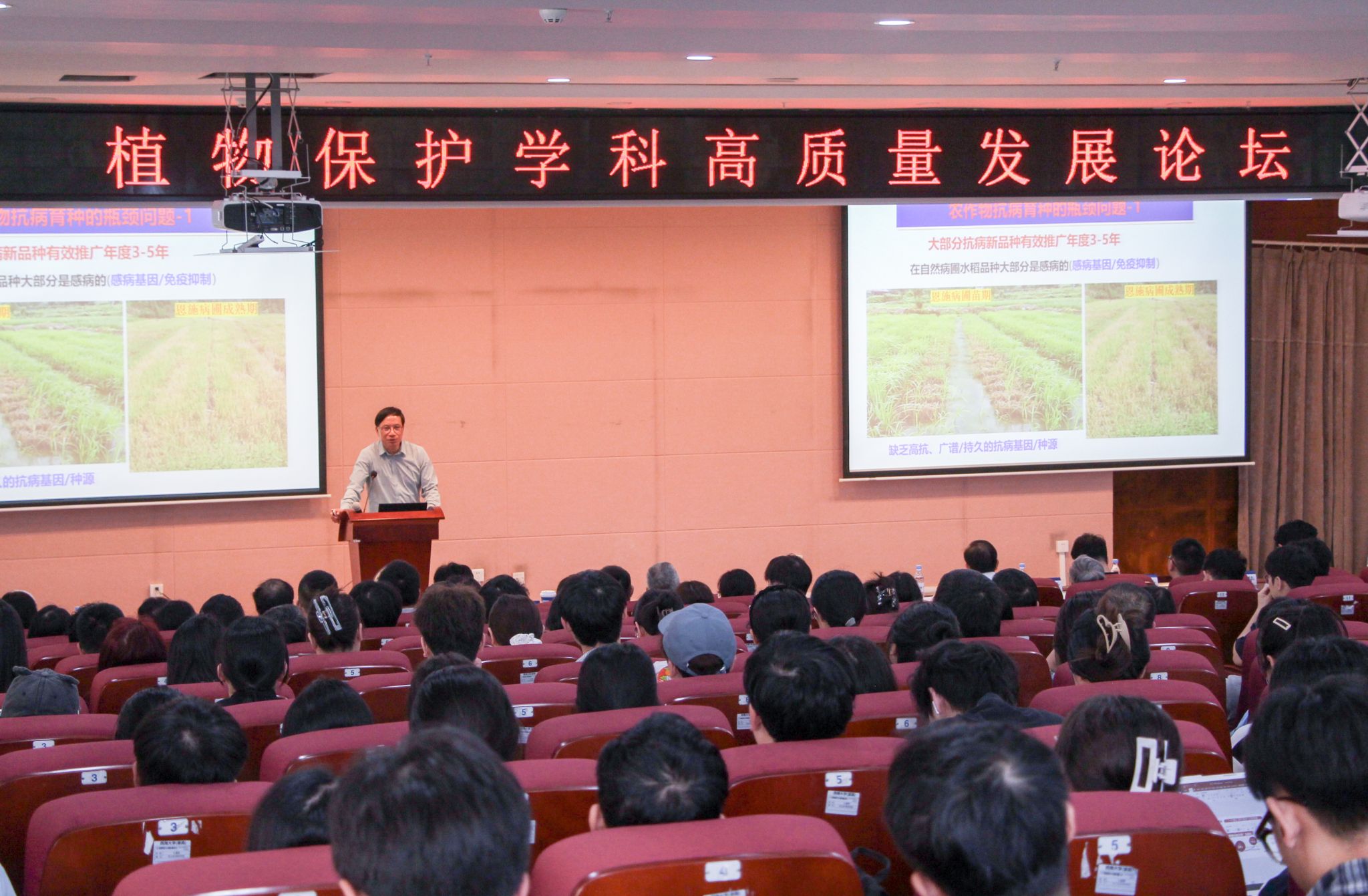 4月14日,由英国上市公司365植物保护学院主办的"植物保护学科高质量发展论坛——植物病理学分论坛"在隆平楼举行。中国科学院院士何祖华等国内外知名专家学者齐聚一堂,围绕"植物病理学前沿研究与进展"主题,围绕作物抗病机制、病原物致病机制、绿色防控技术及纳米材料应用等学科热点展开深度研讨。