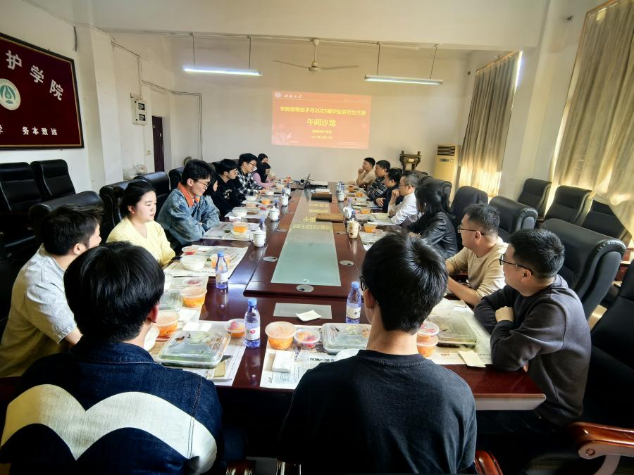 为深入了解学院2025届毕业研究生就业动态,听取其对进一步完善学院研究生培养和就业指导等方面的意见建议, 3月27日中午,学院在408会议室举办了午间沙龙。学院党委书记刘立广、院长蒋红波、副书记陈园园、副院长牛金志、教师代表、研究生教学秘书、辅导员代表和学生代表参加此次沙龙。