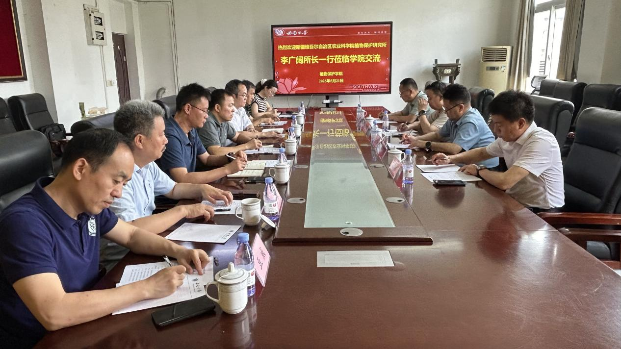 5月21日,新疆维吾尔自治区农业科学院植物保护研究所李广阔所长率队一行4人莅临我院开展座谈交流和引才宣讲活动。学院党政领导、相关科研骨干及学院办公室负责人参加相关活动。