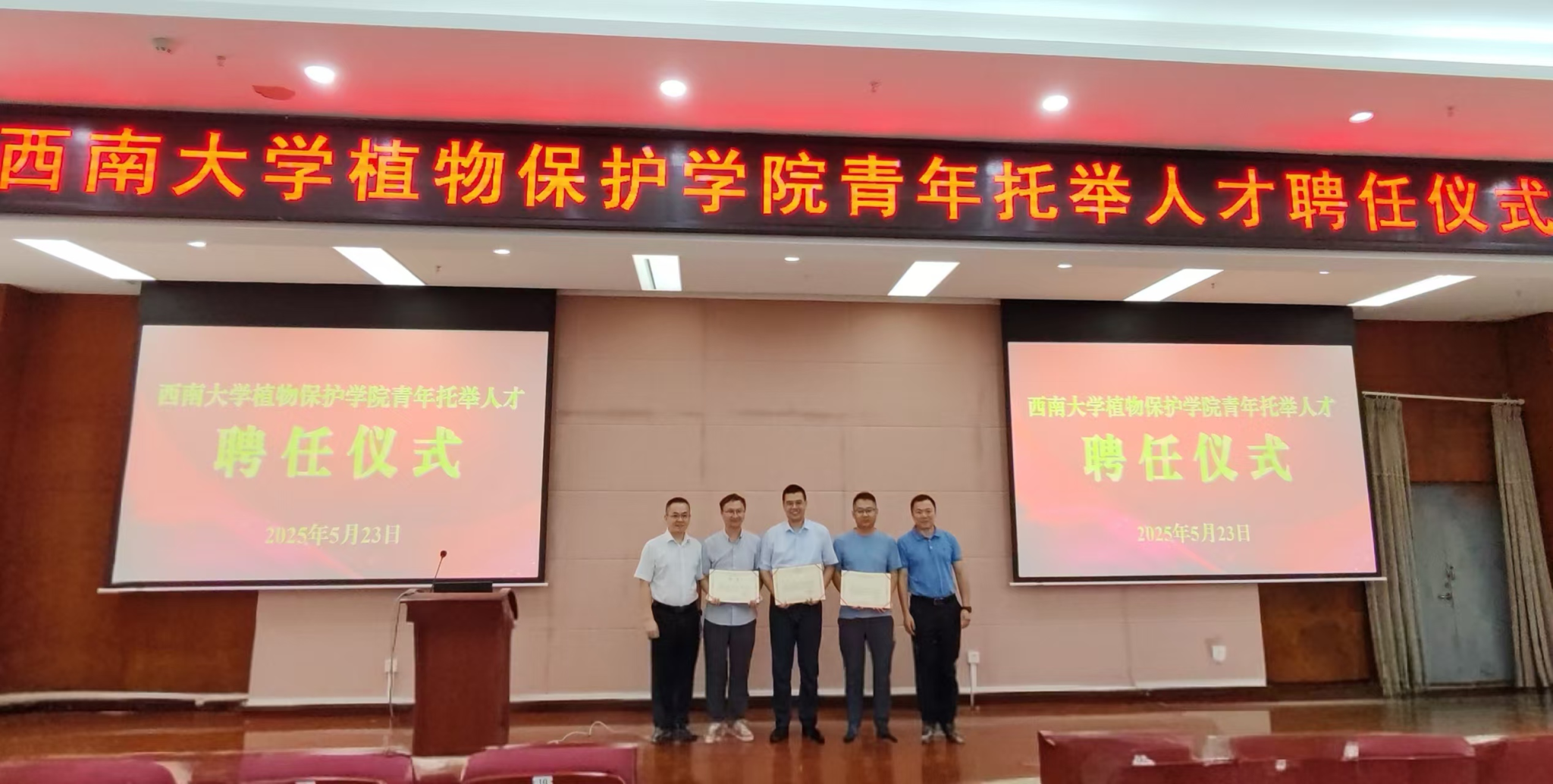 5月23日下午,植物保护学院青年托举人才聘任仪式暨“植研”月度学术沙龙5月活动在隆平楼204报告厅顺利举行。学院党政领导、全体专任教师、博士后及博士研究生参加活动,聘任仪式和学术沙龙活动分别由院长蒋红波教授和副院长牛金志教授主持。