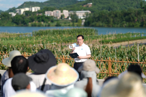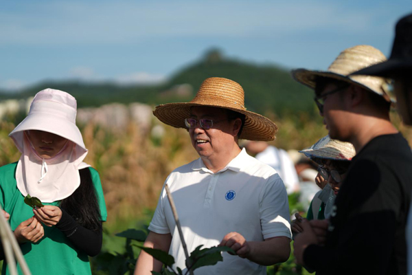 7月2日下午,学院师生深入田间课堂,在实验农场合川基地开展“田间课堂”系列活动,即一周专业课程田间实习、一堂思政大课、一次师生党支部联合主题党日活动、一场月下院坝师生交流会。“田间课堂”系列活动至今已经走过24个年头,今年七月,师生们依然顶着烈日,不惧风雨,深入田间地头,通过认昆虫、识病害、田间系统调查等实践活动,将课堂上的理论知识付诸实践,在实践中巩固专业知识。学校校长王进军、学校党委组织部、党委宣传部、党委学生工作部、本科生院、团委、智慧农业学院等部门和学院负责人以及植物保护学院领导班子全体成员近200名师生参加活动。