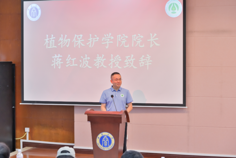 学院院长蒋红波致辞,他热烈欢迎298名新同学的加入,并介绍了学院的学科实力与办学条件。并结合“崇德尚学,务本致远”的院训精神,以“沟通”为关键词,分享了成长建议,鼓励同学们多与父母、老师、同学以及自我沟通,努力成长为有理想、有本领、有担当的植保人才。